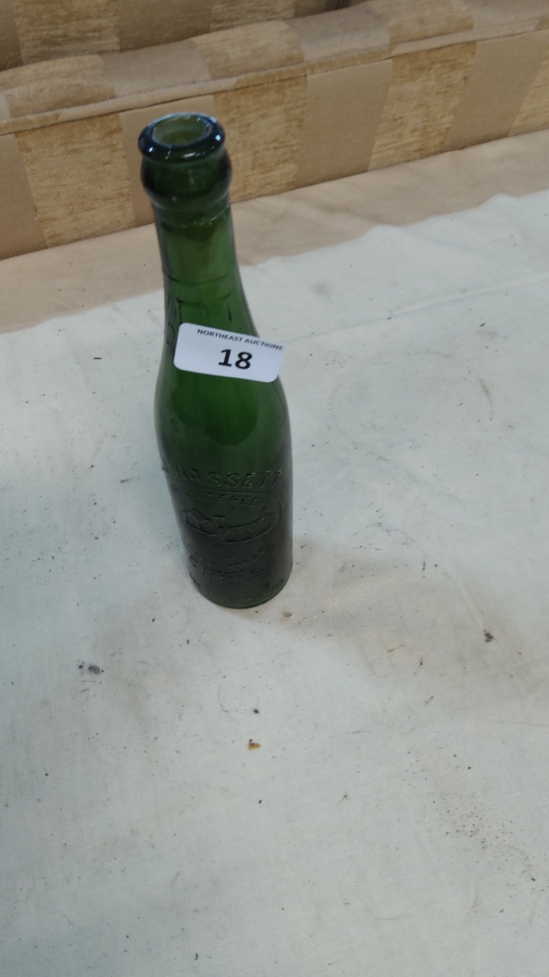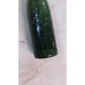 Green glass beer or mineral water bottle embossed with a gothic church motif, legends including “Trade Mark” and locality “Ennis”, Ireland, early–mid 20th century.