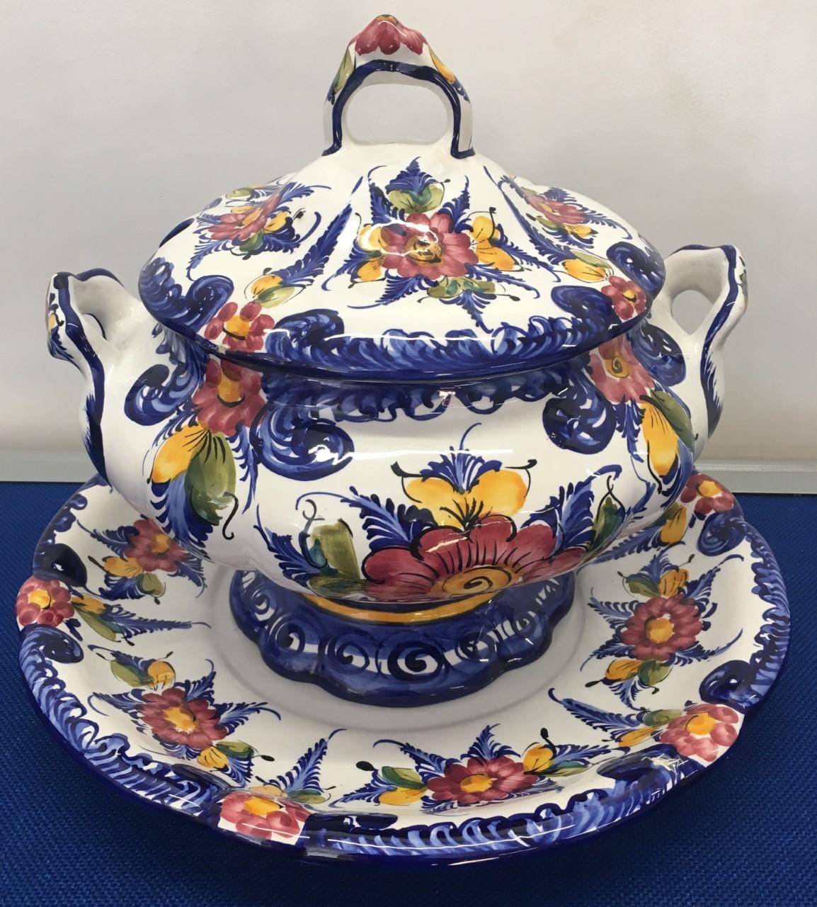 A lovely hand painted Portuguese Soup Tureen, with matching lid & tray.