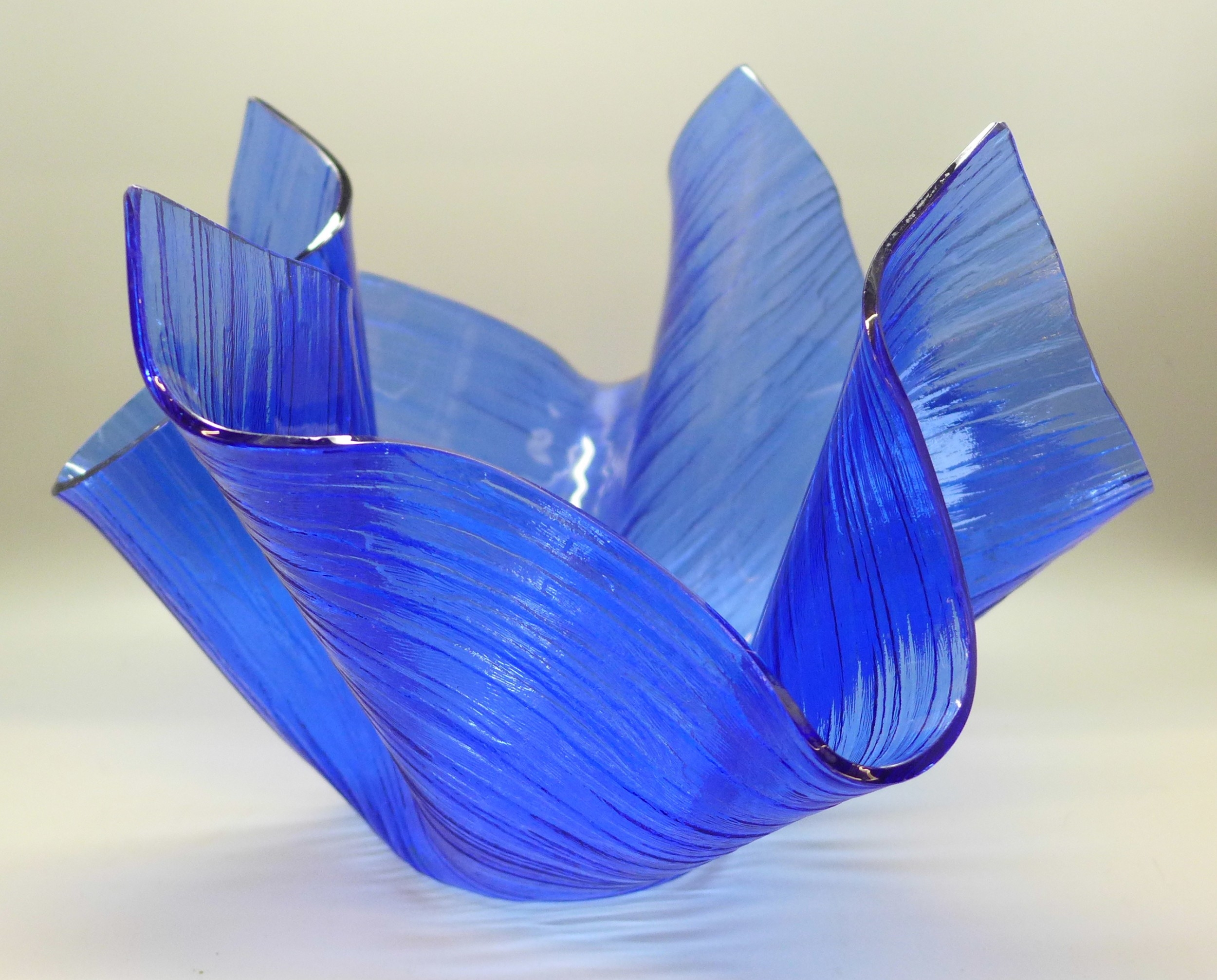 A blue glass handkerchief vase, possibly by Chance Brothers, 17cm h