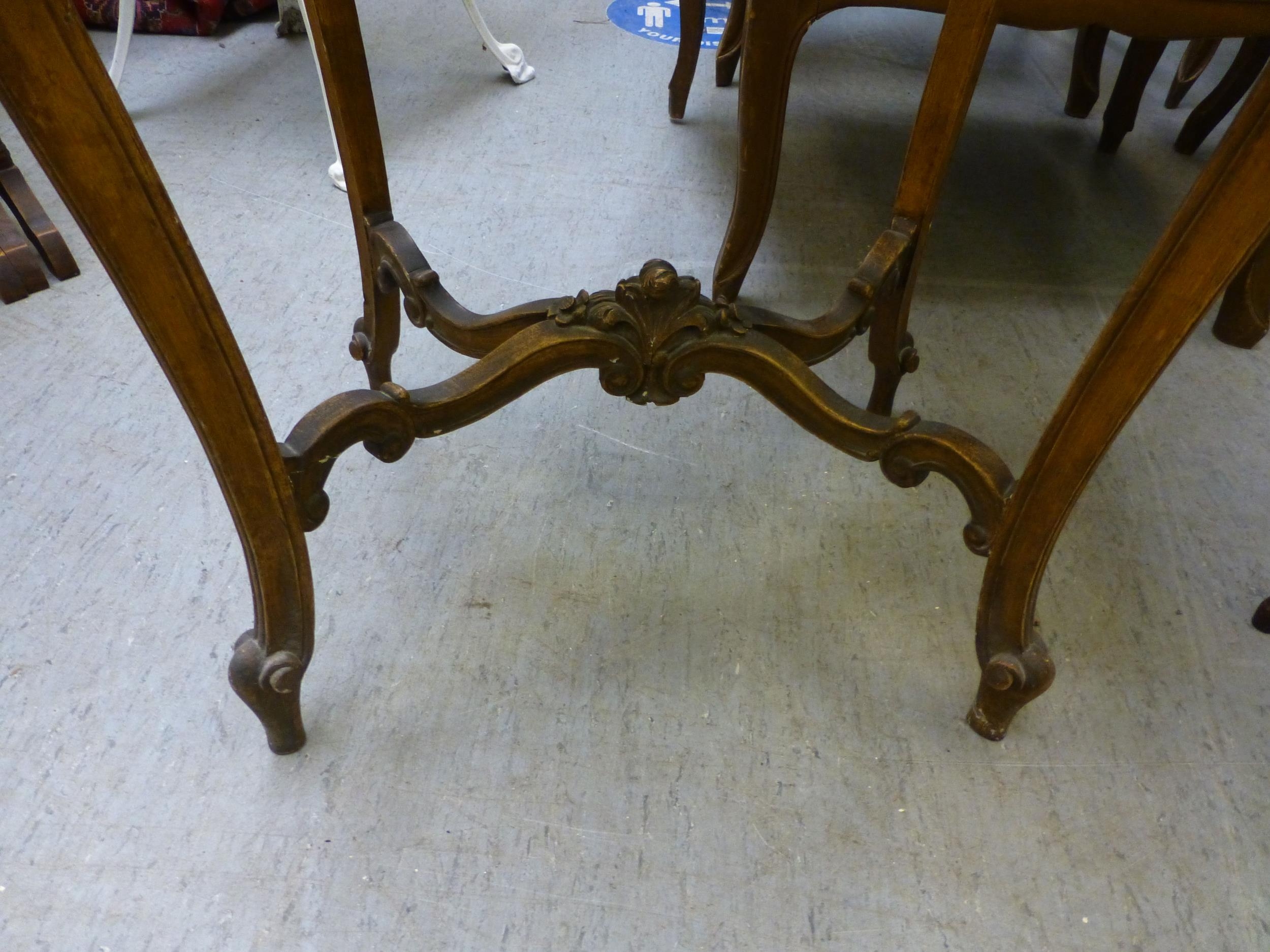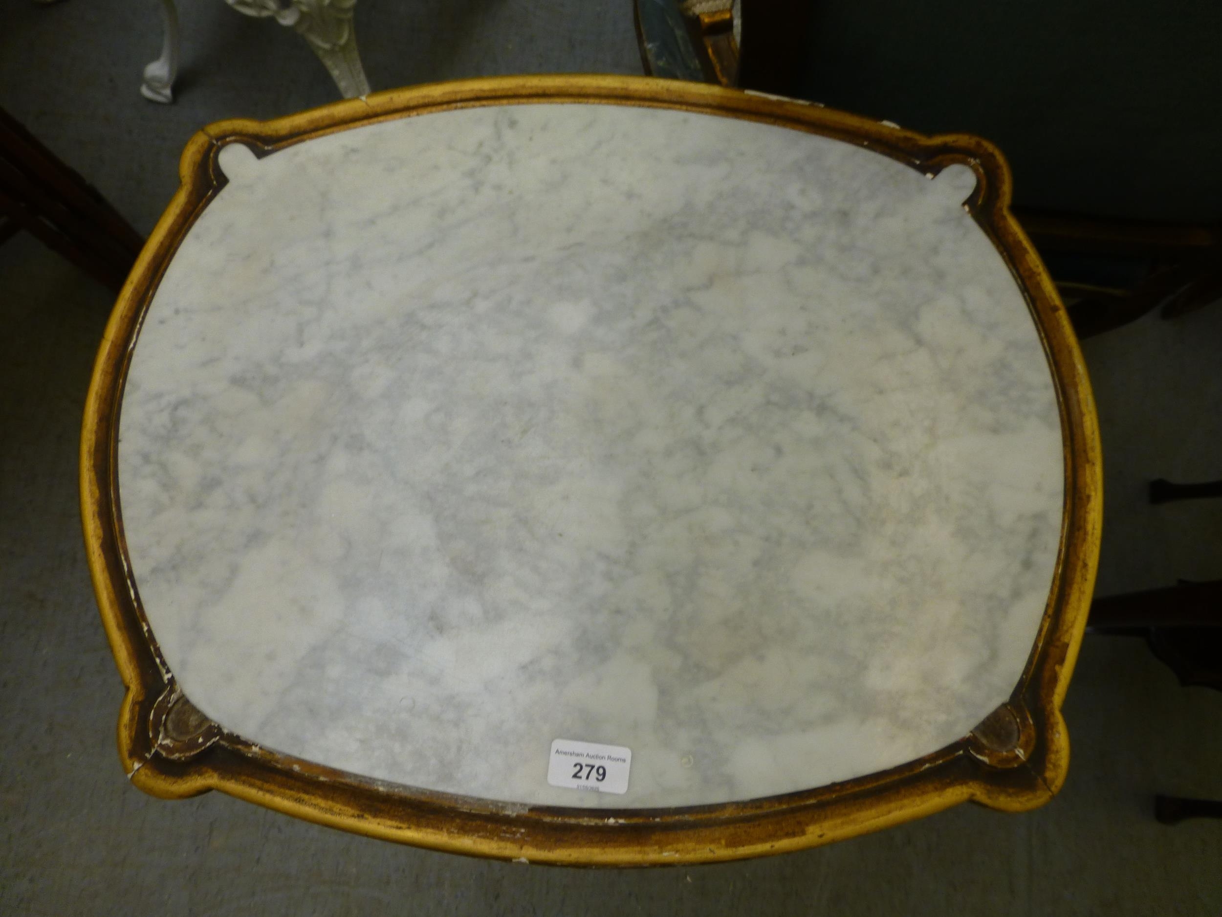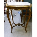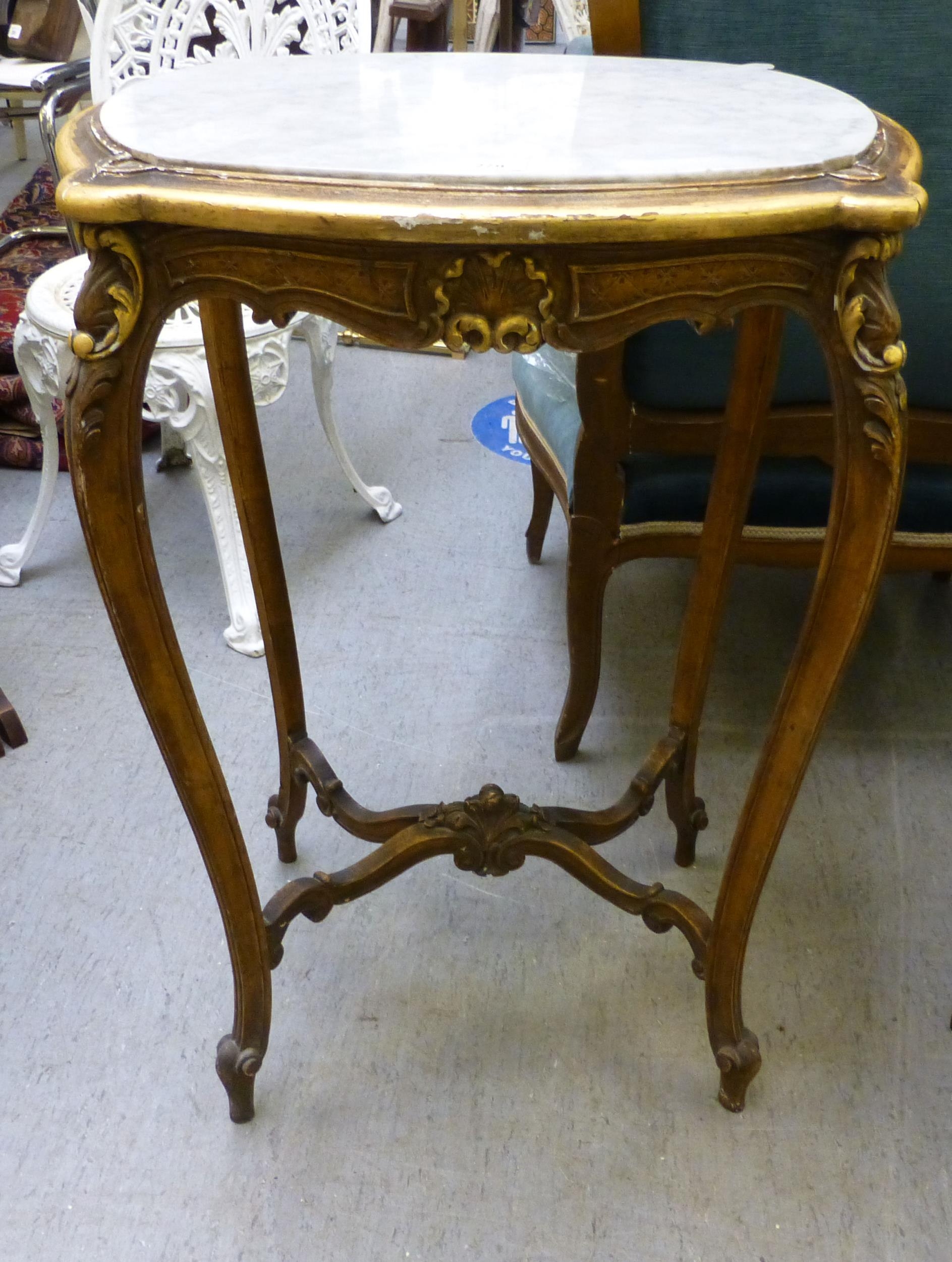 A modern Louis XVI design gilt gesso occasional table with a marble table, raised on cabriole legs 30"h 22"w