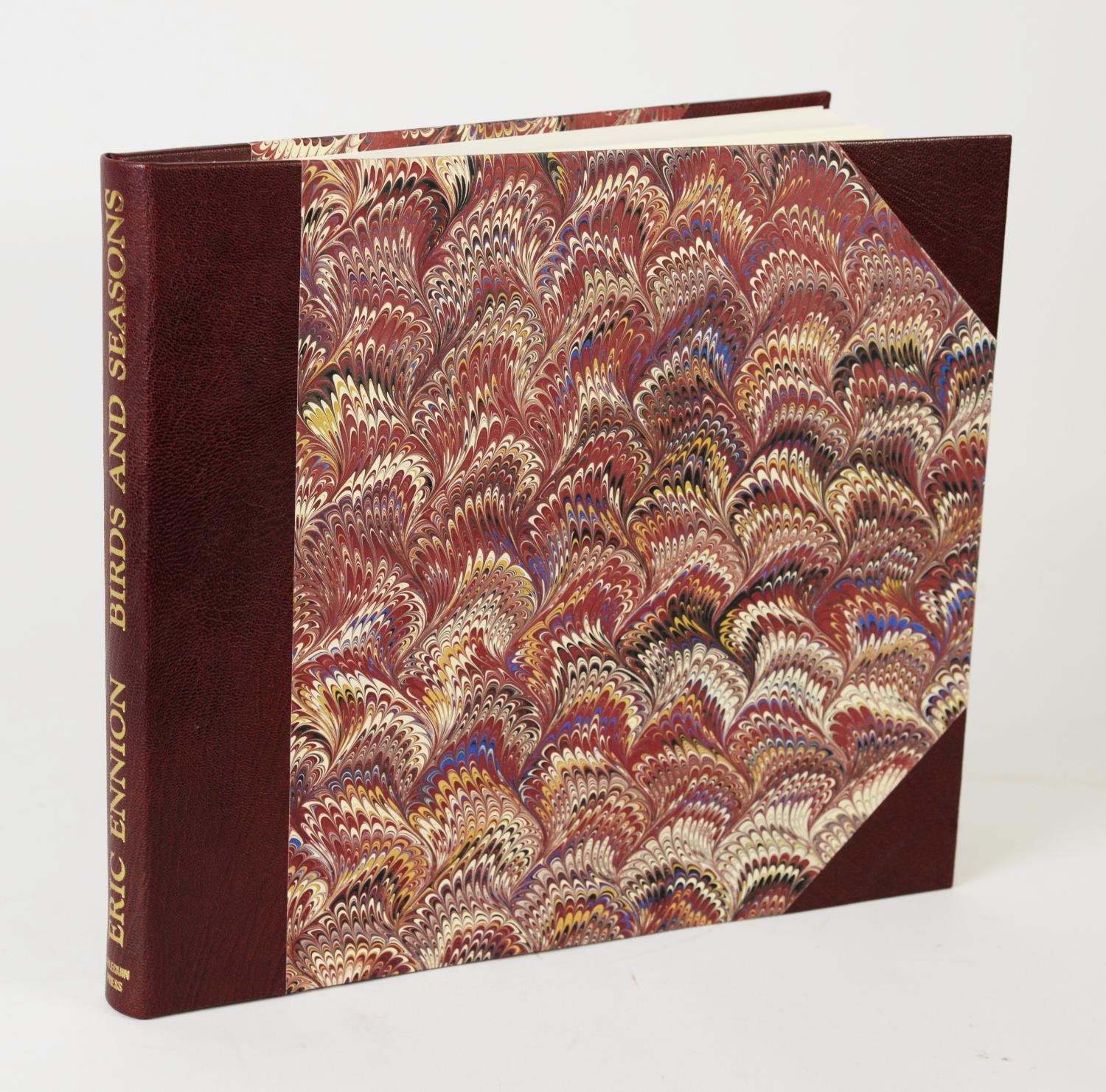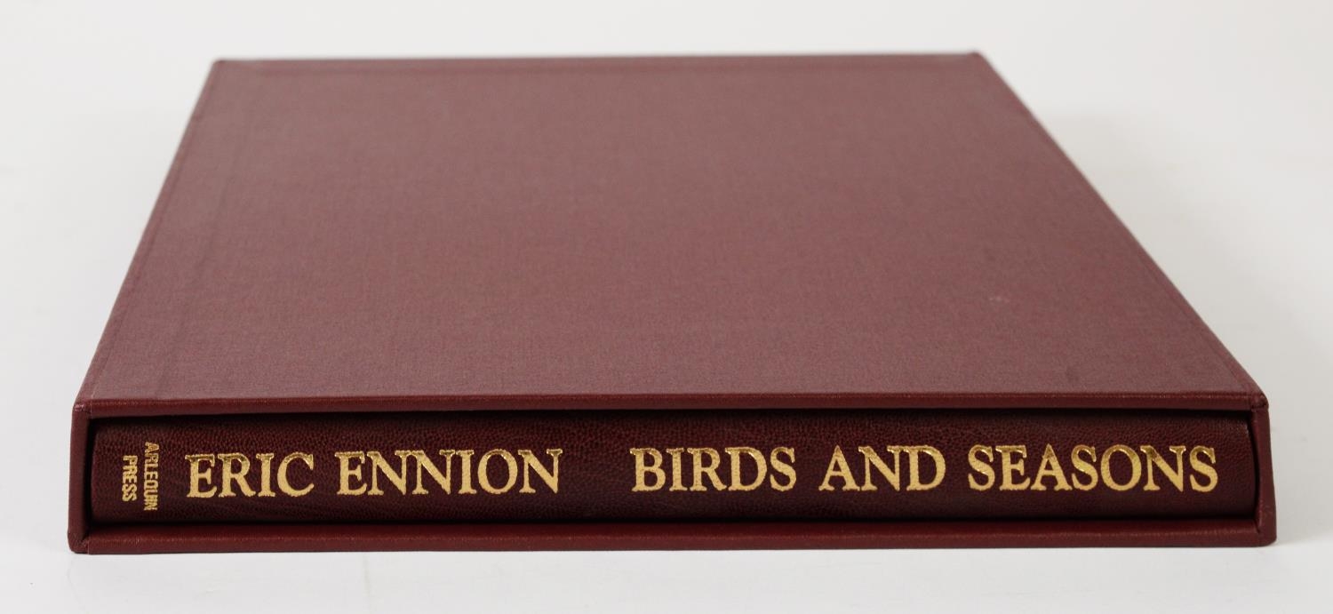 Eric Ennion - Birds & Seasons, introduction by Bob Walthew, pub Arlequin Press, ltd ed 40/55, bound in half leather, slip case with an original pen and ink drawing by Eric Ennion from an unpublished field study