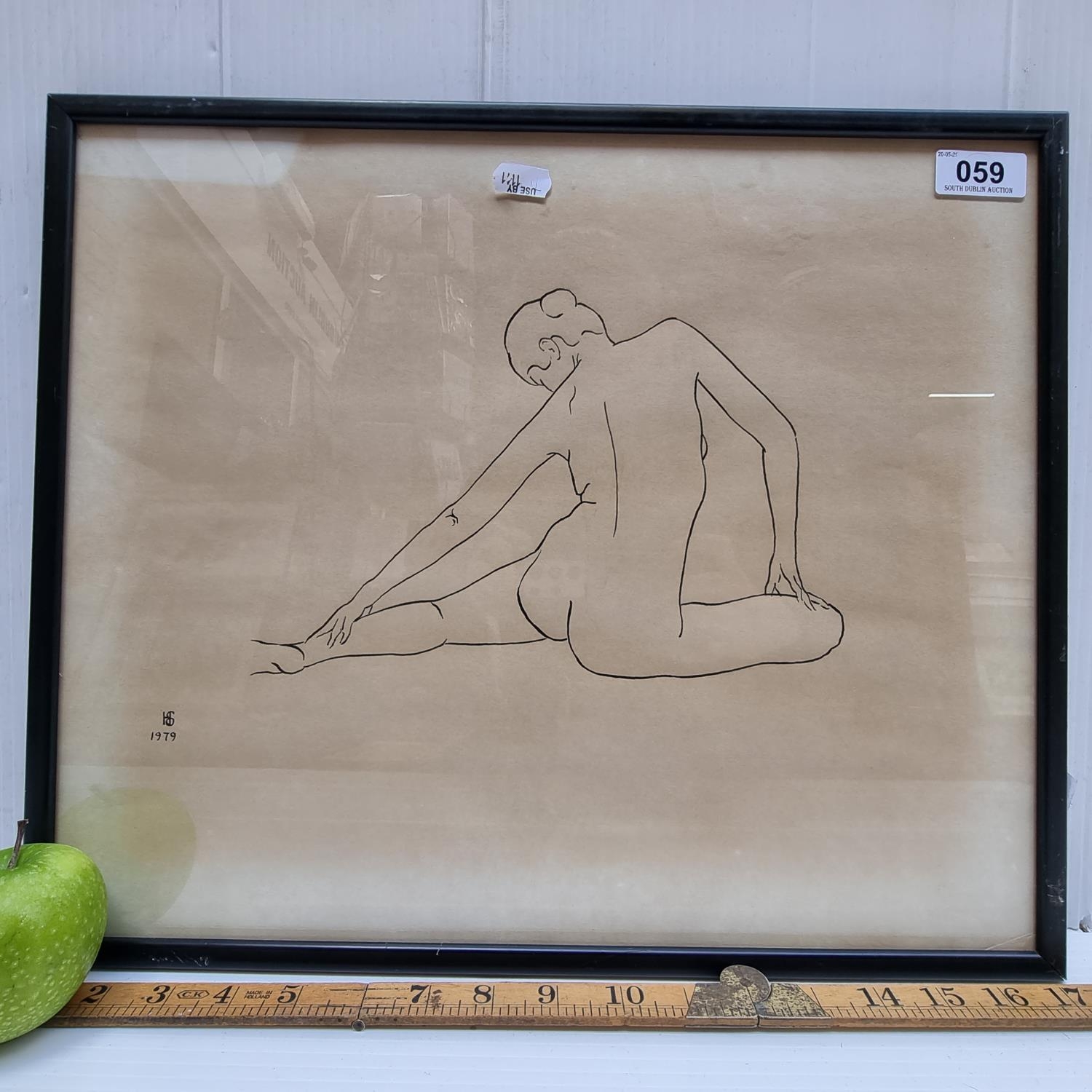 Good sized minimalist nude female line drawing in a classical pose, signed by artist bottom left 'H.S, 1979'.