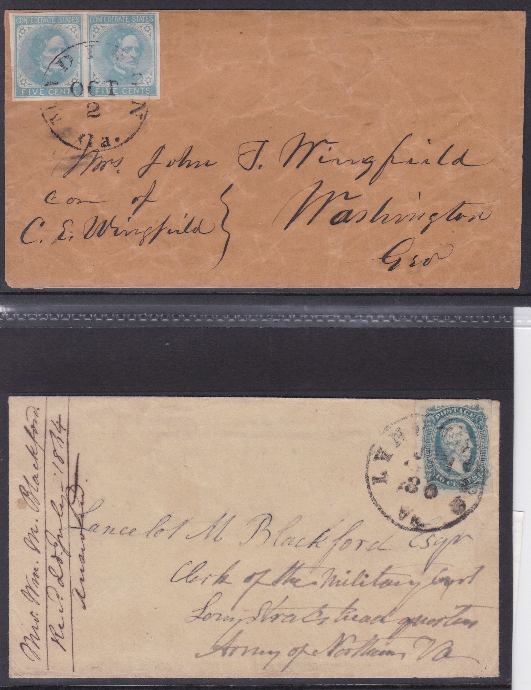 CIVIL WAR 1860's postal history collection all with confederate stamps frankings. 13 covers all selected for quality with a good variety of usages inc pairs.