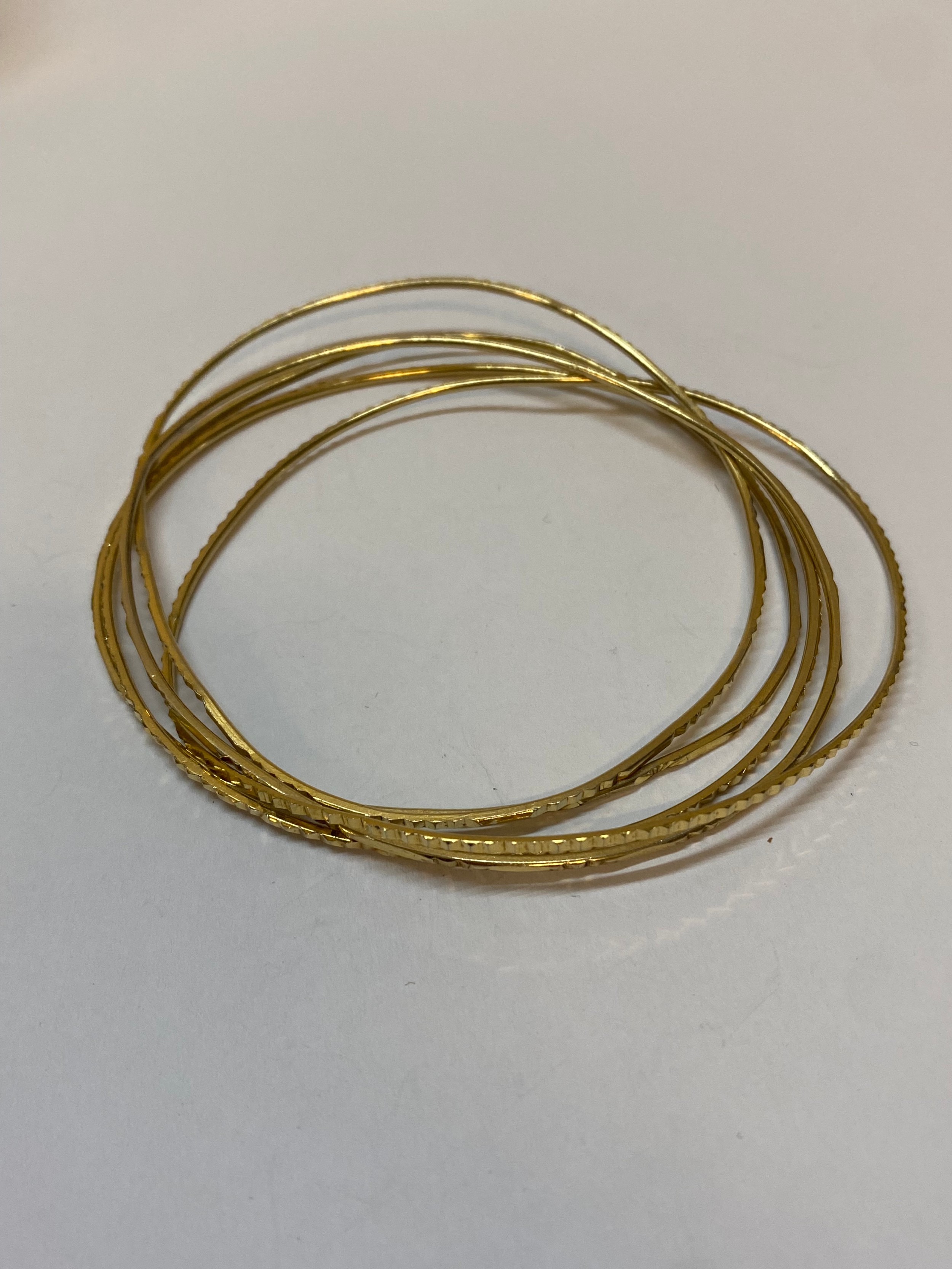 Five gold coloured metal bangles