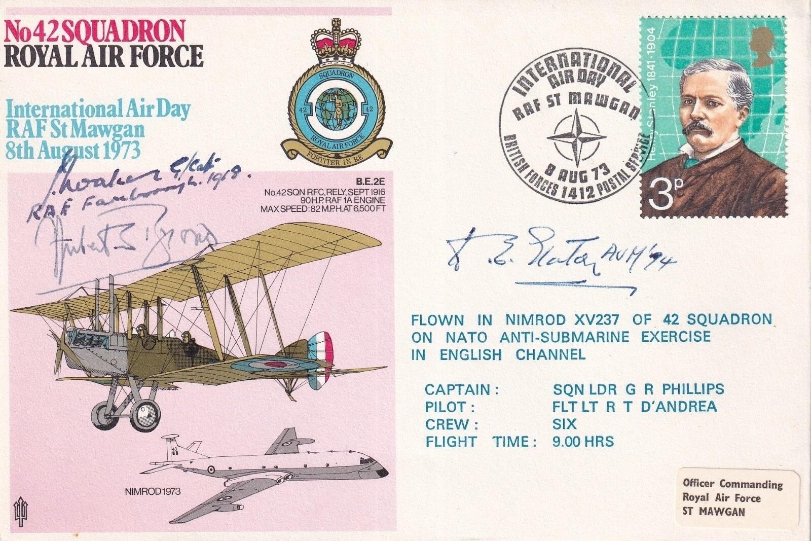 18 Sqn Cover Signed 2 WW1 Pilots W E Stanton, Gp Capt Noakes plus one not identified. 26 Jun 73 BFPS 1401 25th Anniv of the Berlin Airlift. 18 Squadron Flown from RAF Gutersloh to GAF Wunstorf in an 18 Sqn Wessex Pilots Wg Cdr T S C Jones AFC, Fg Off M A McQuillen Personally Signed by Air Vice Marshal William Ernest Staton, CB, DSO and Bar, MC, DFC and Bar(27 August 1898 - 22 July 1983) was a British airman who began his career as a WW1 Pilot Flying Ace with 26 Victories. He was transferred to the RAF (RAF) on its creation in 1918 and remained in the RAF during the inter-war years. During the WW11 he served in England and pioneered the bombing technique of using pathfinders to mark targets. He then served in the Far East before becoming a Prisoner of War to the Japanese. After the war he returned to Great Britain and the RAF. Twice Captained the British Olympic Shooting Team. Personally Signed by Gp Capt Noakes L + P School Hendon 1915 RAE Farnborough 1917, 1918. No 55, 26 September 1916: Other hostile machines were engaged and damaged by Sgt Noakes, 29 Sqn. Captain Hubert Standford Broad MBE, AFC (1897-1975) was a British First World War aviator RNAS and noted test pilot. At the 1925 Schneider Trophy Broad was the sole British entrant following a number of pre-race accidents. Flying a Gloster III seaplane, he came second to an American Army test pilot called James Doolittle. Broad appears to have had an affair with Beryl Markham, the first woman to fly solo across the Atlantic from east to west; he was named by Mansfield Markham as a co-respondent in his 1937 divorce from Beryl. Good condition. All autographs come with a Certificate of Authenticity. We combine postage on multiple winning lots and can ship worldwide. UK postage from £5.99, EU from £7.99, Rest of World from £9.99