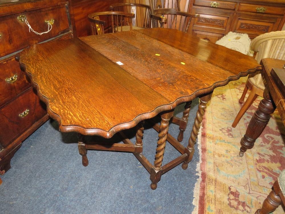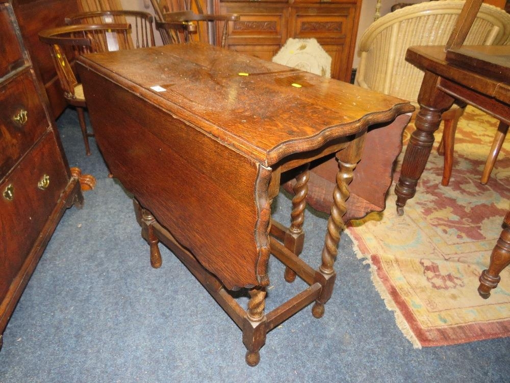 AN OAK BARLEYTWIST GATELEG TABLE