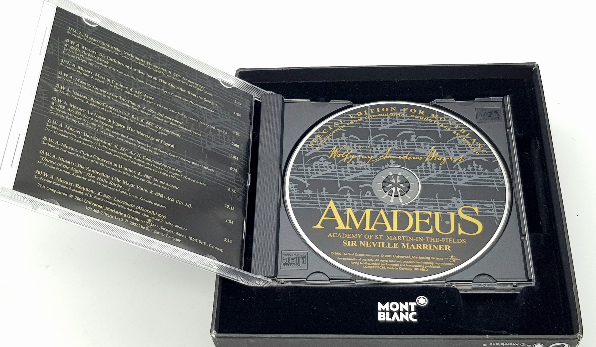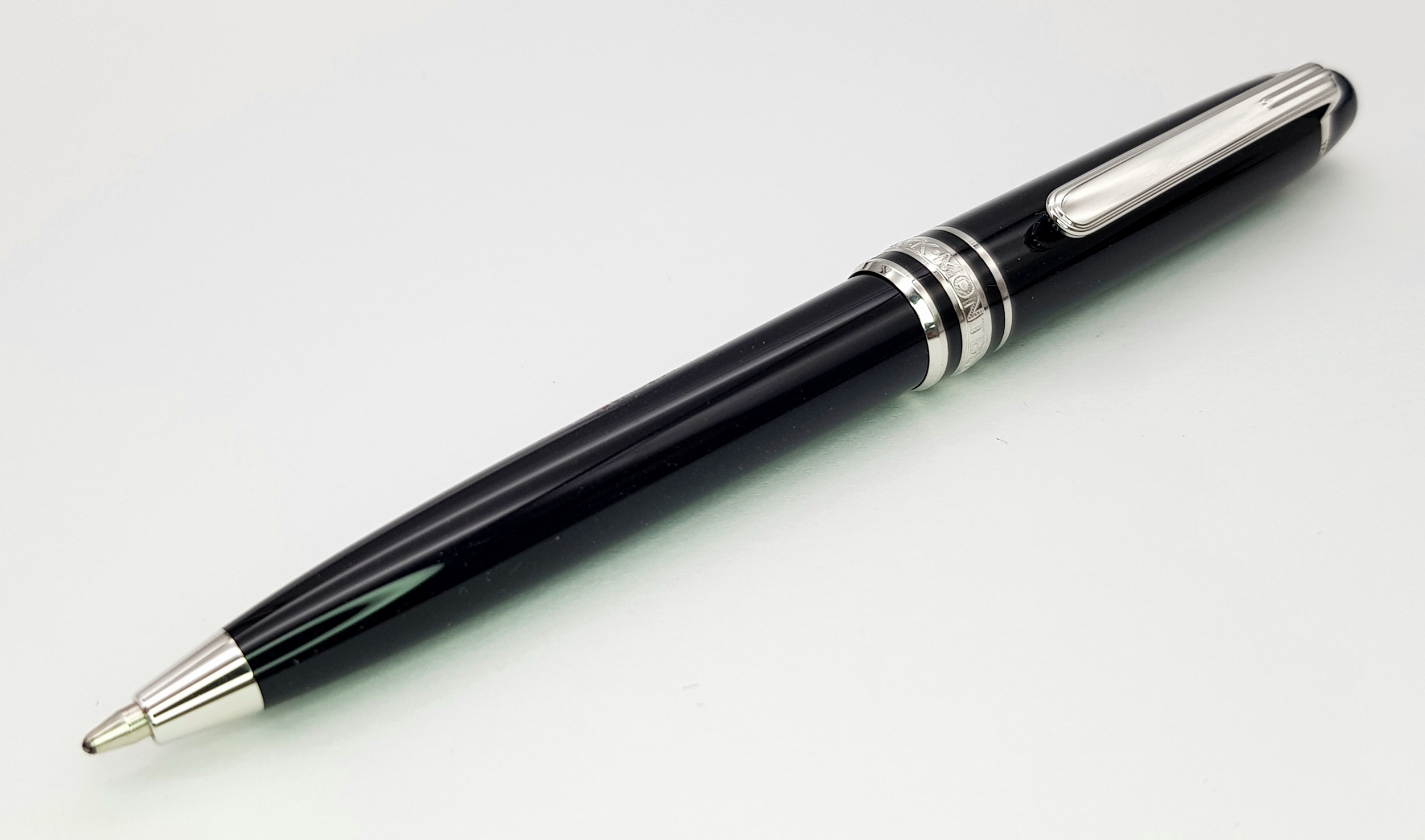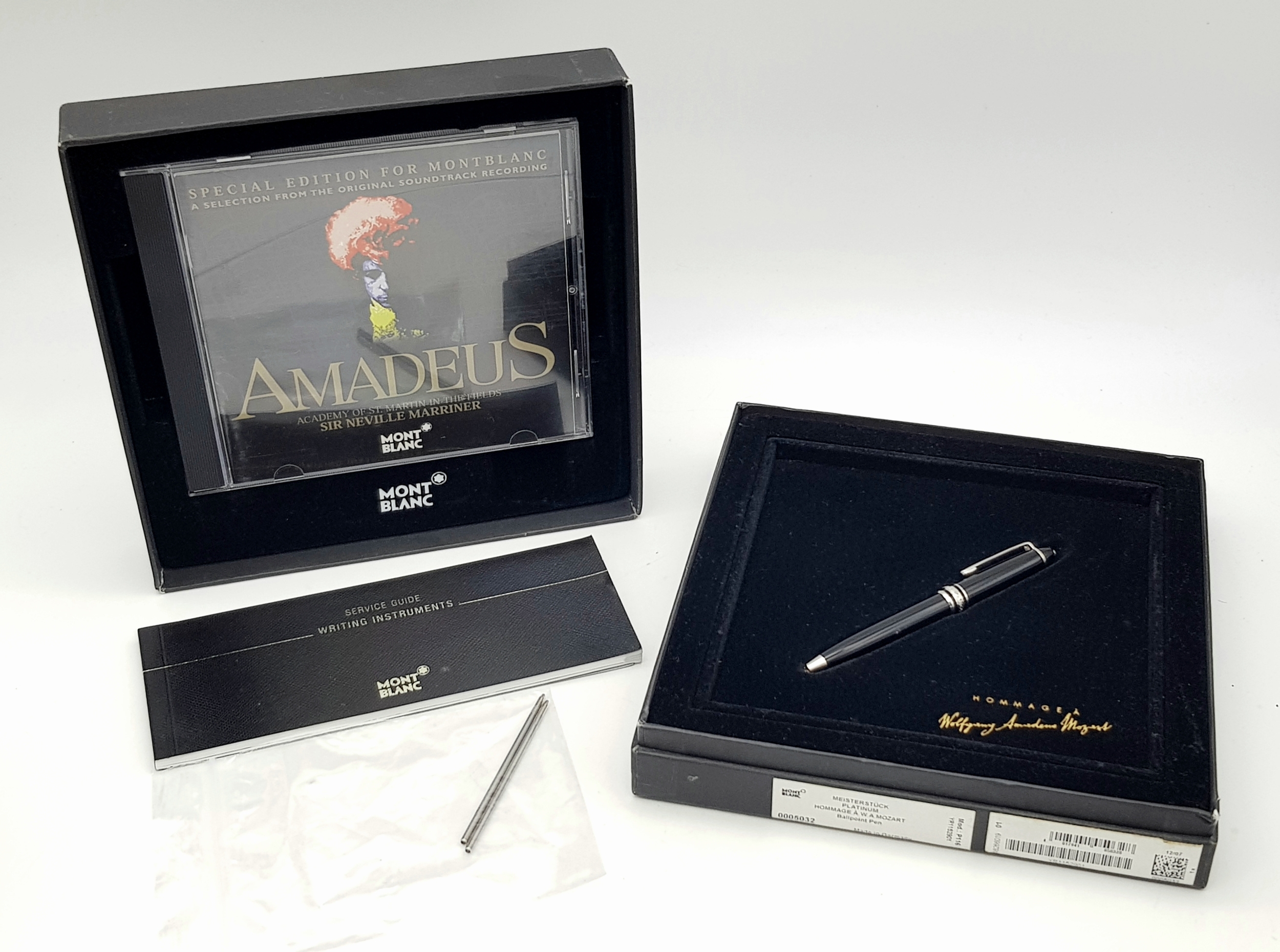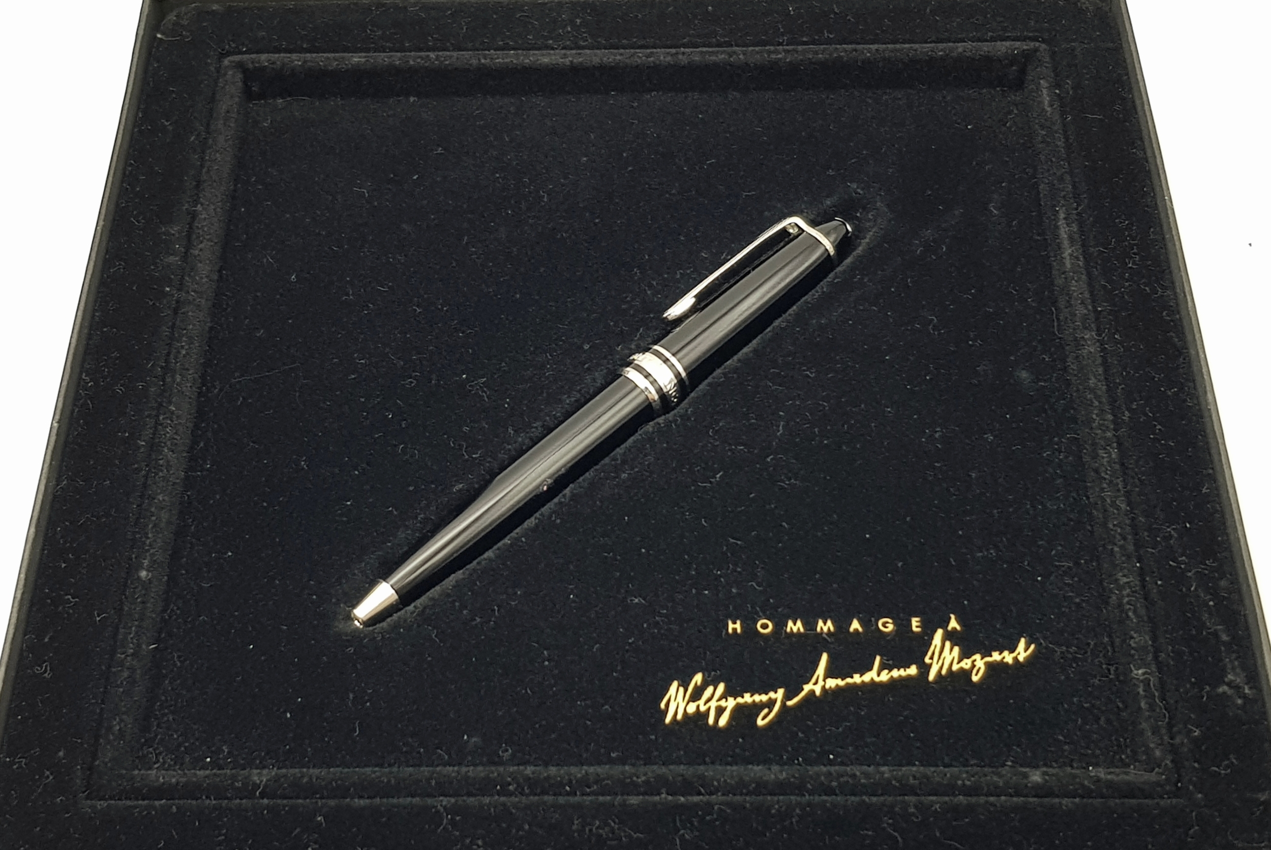 A Limited Edition Montblanc Meisterstuck Platinum, Mozart Edition, Black Ballpoint Pen in original presentation pack. Fully writing with new cartridge fitted and with an additional two spare cartridges.