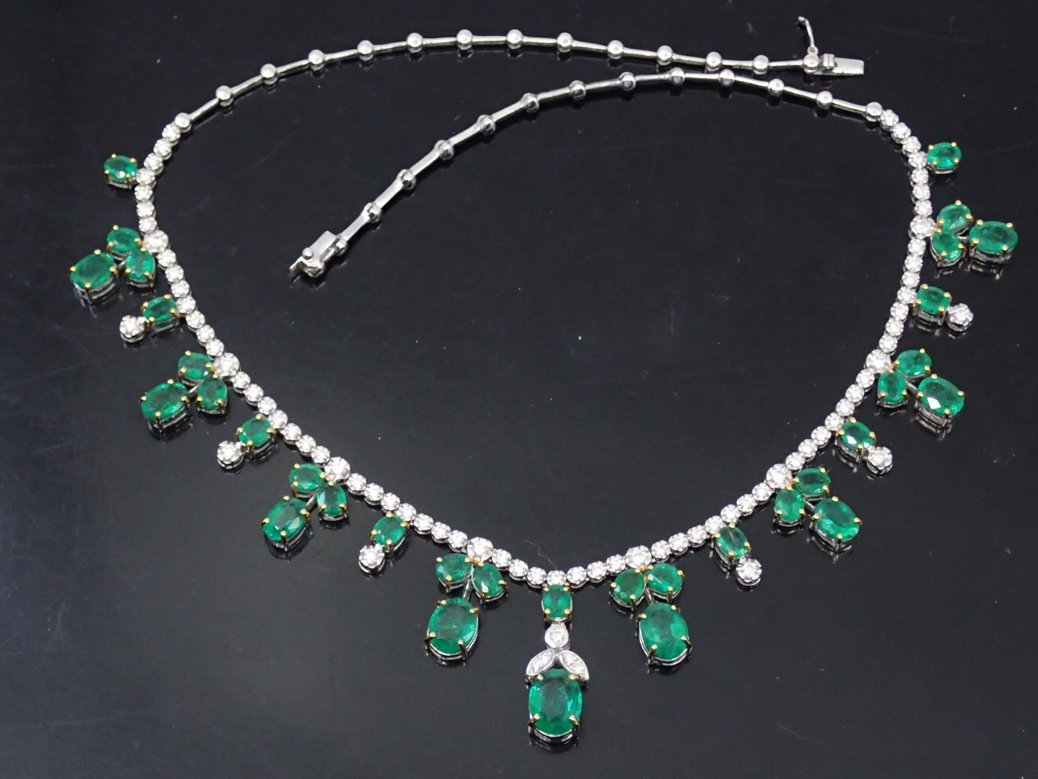 A fine emerald and diamond necklace set in 18ct gold