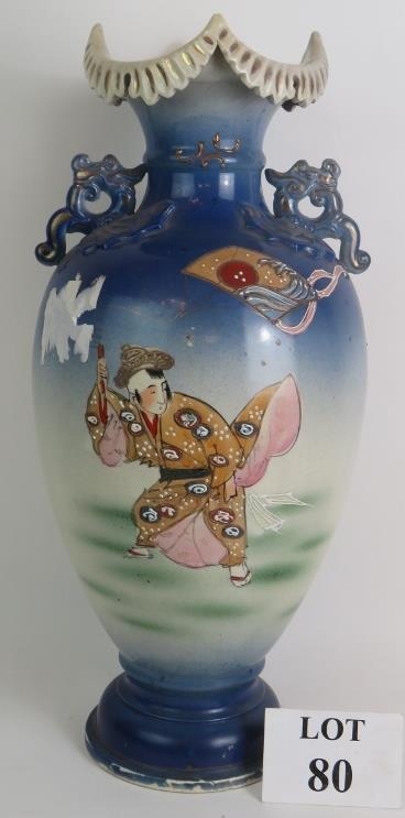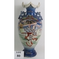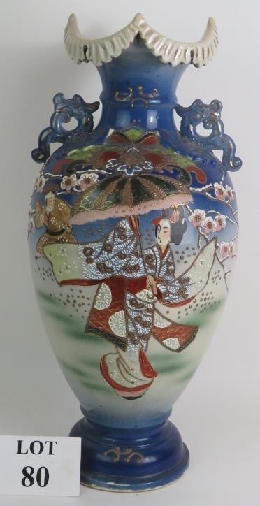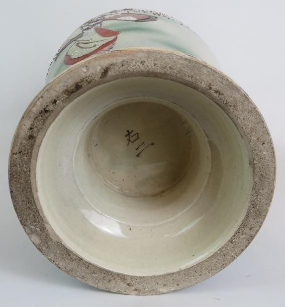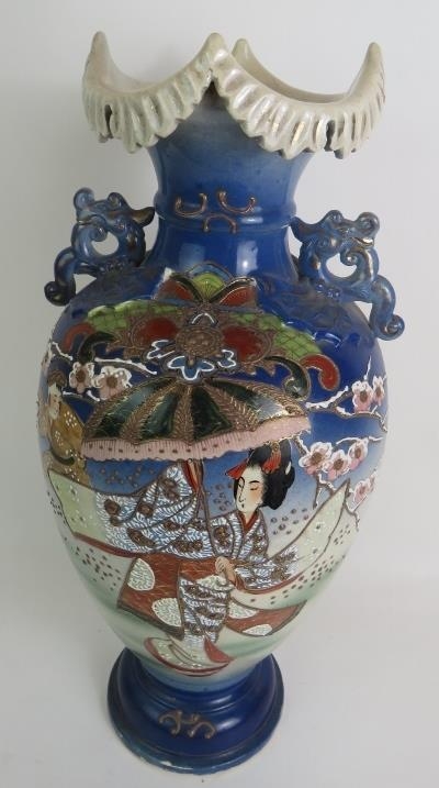 A large Japanese Satsuma ware vase decorated with traditional Geisha scenes. Signed to base.