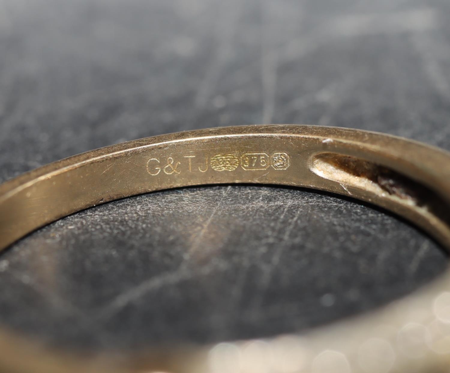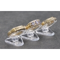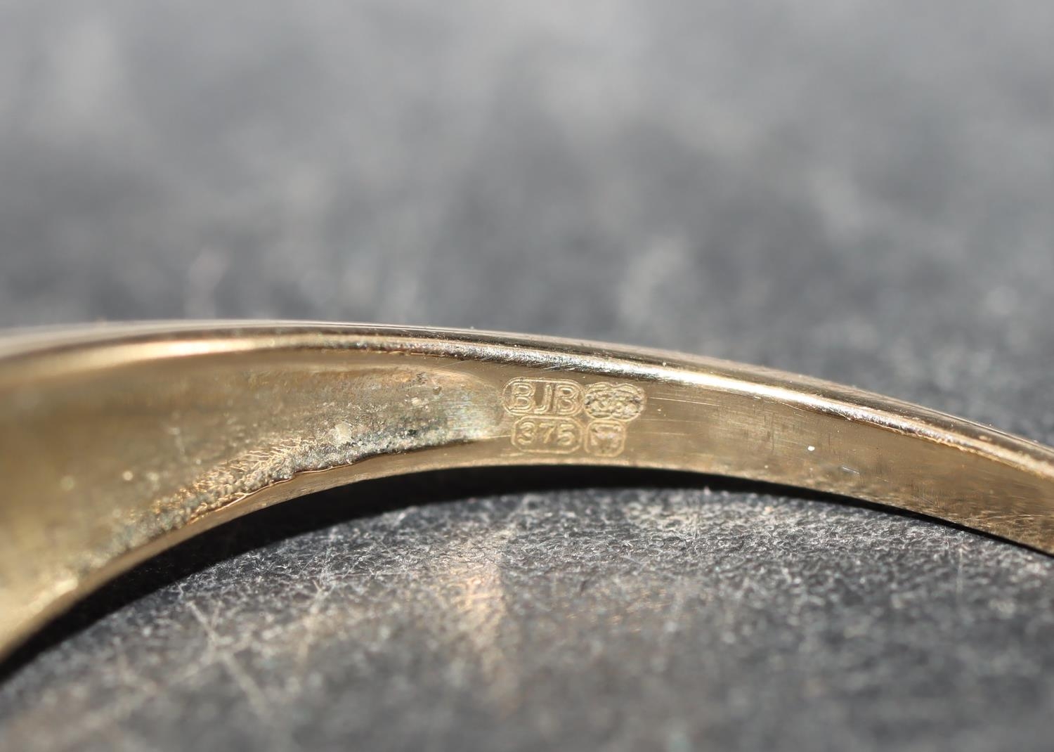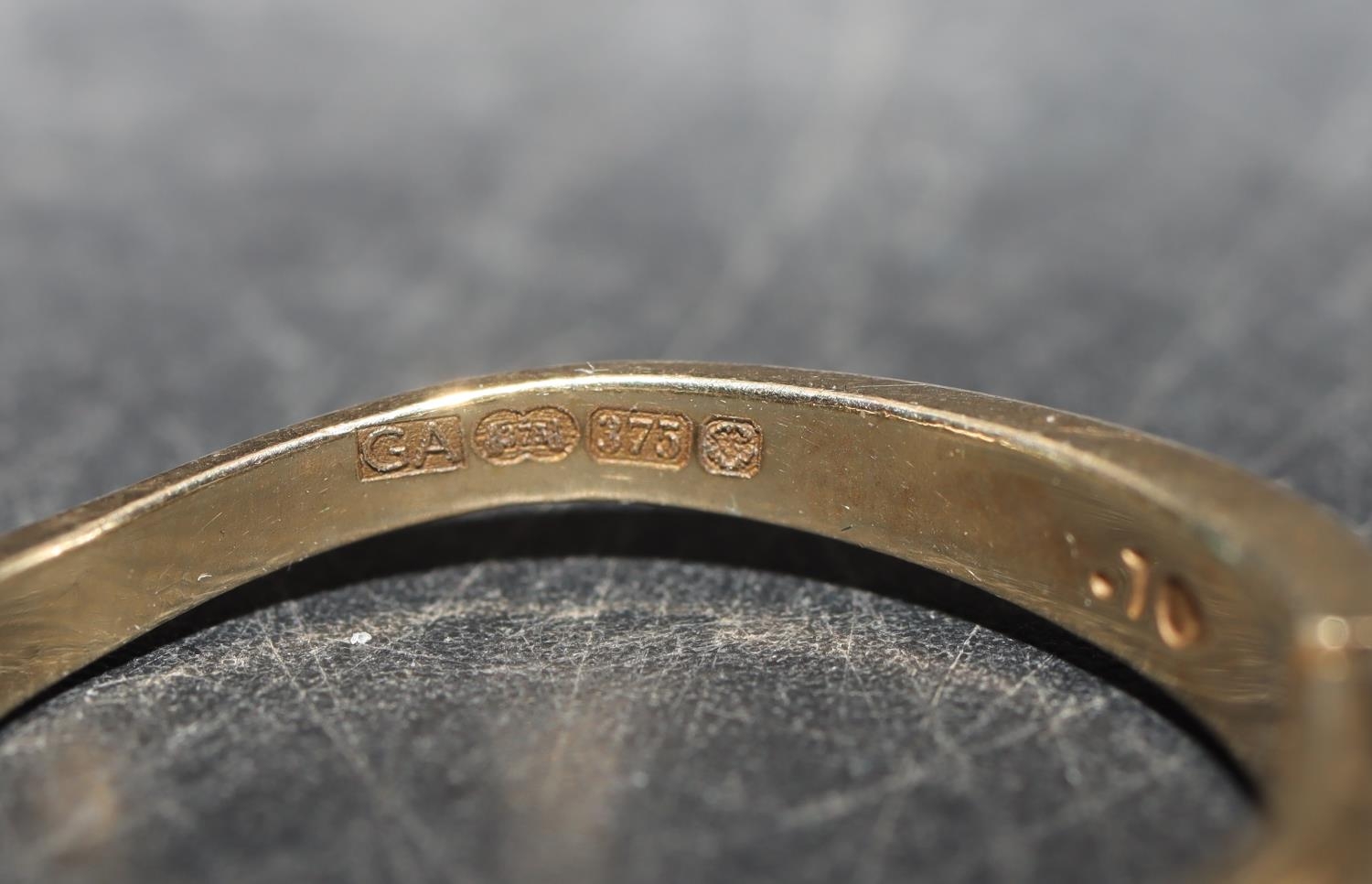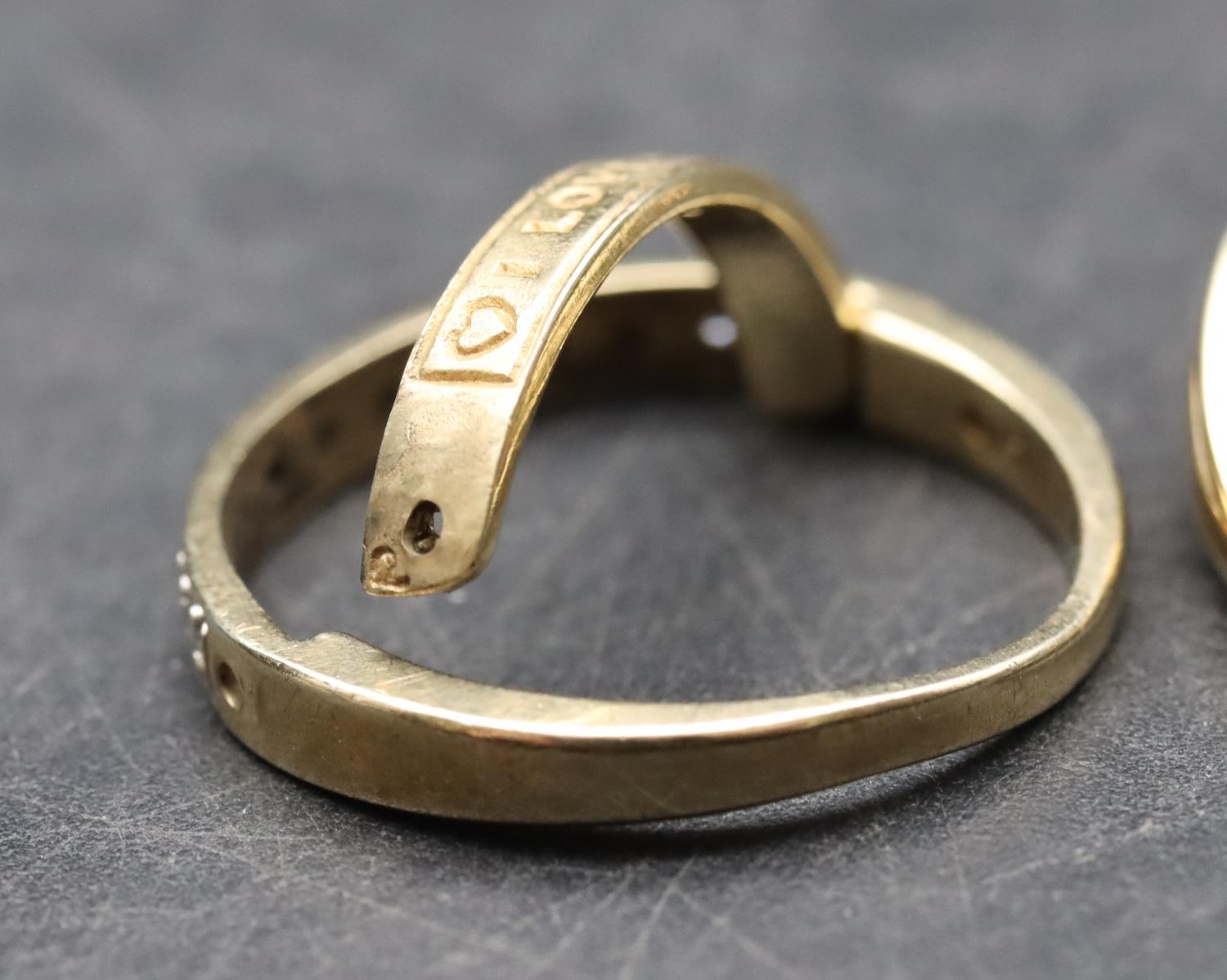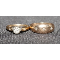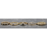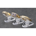 A ladies' 9ct gold ring set with 3 blue stones interspersed by small diamond chips, Size P/Q and 2 9ct gold half eternity style rings set with small diamond chips, Size O and P, 8.1 grams gross (3)