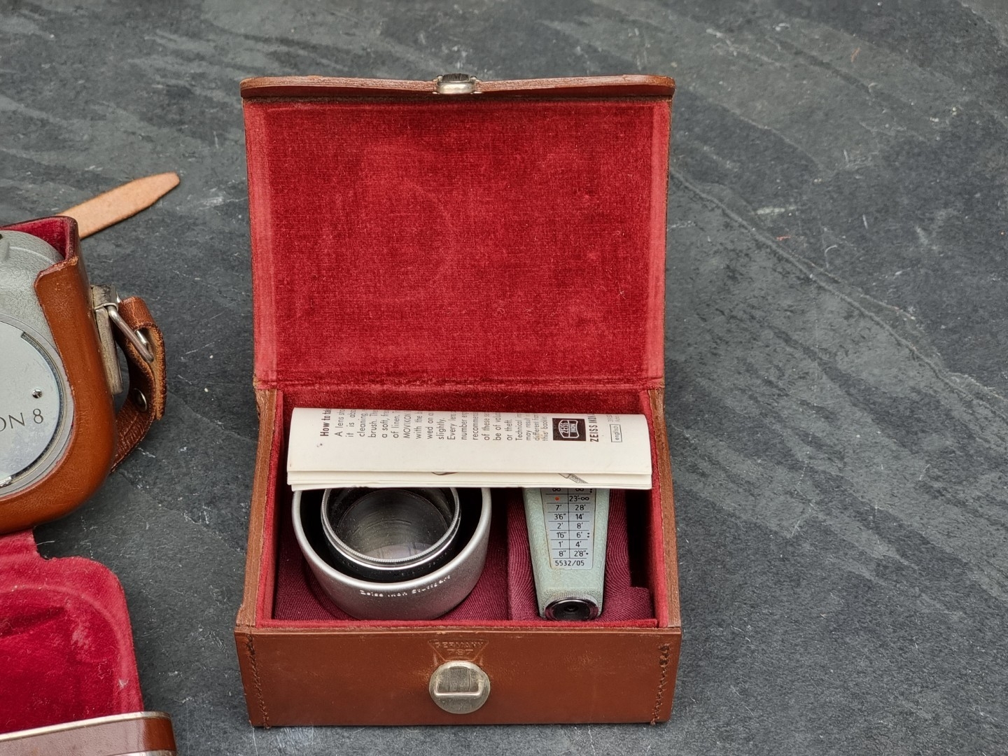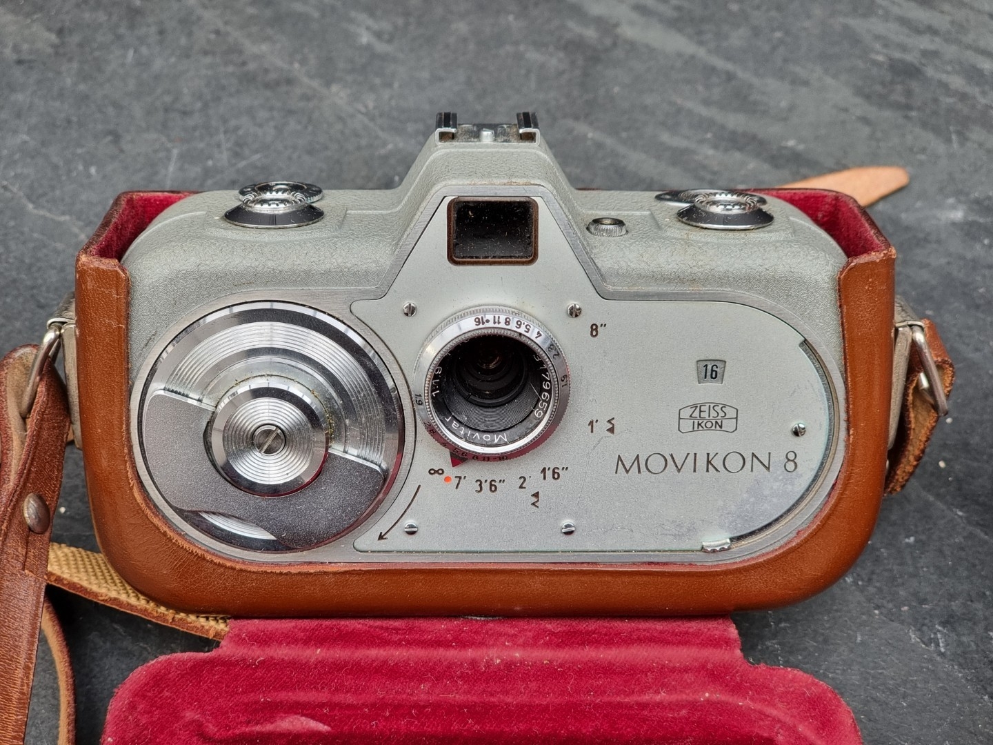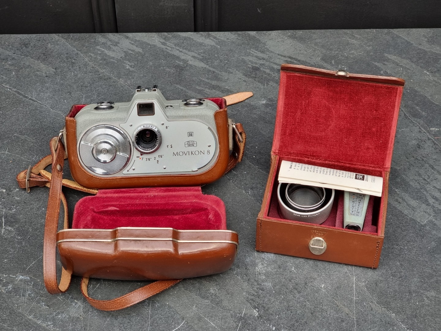 Cameras: a Zeiss Ikon 'Movikon 8', in leather case, with related accessories.