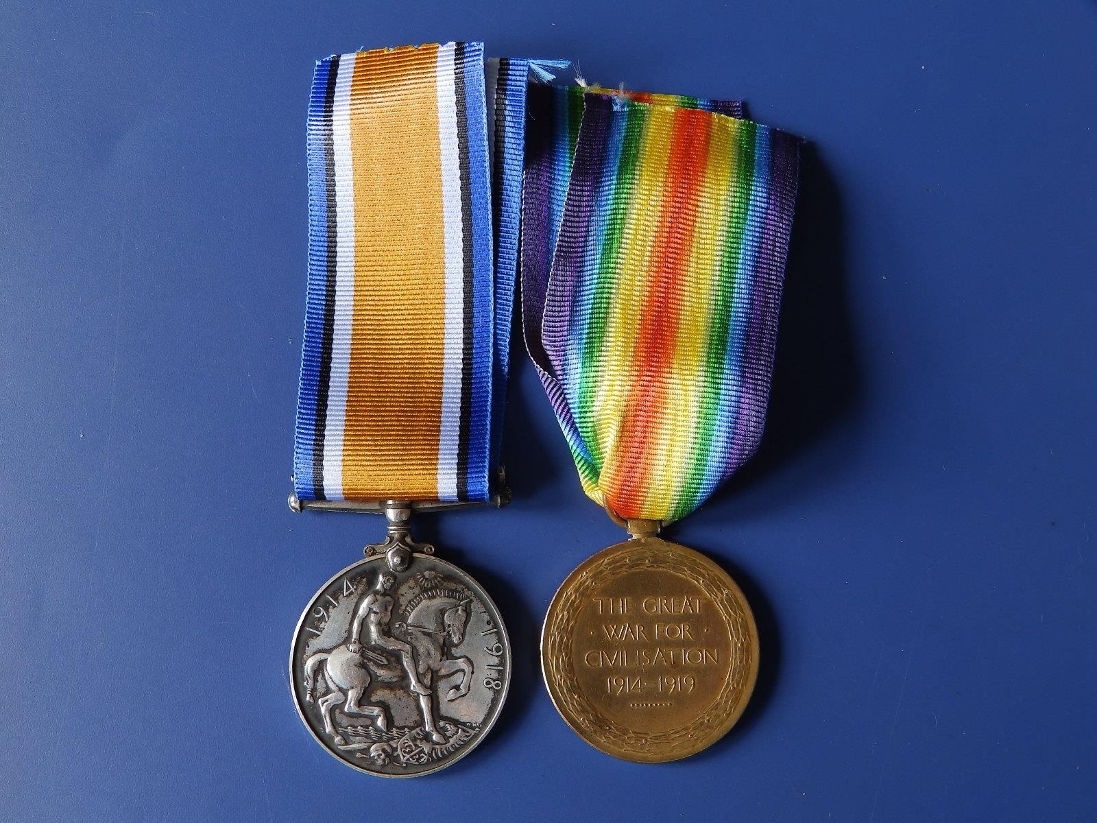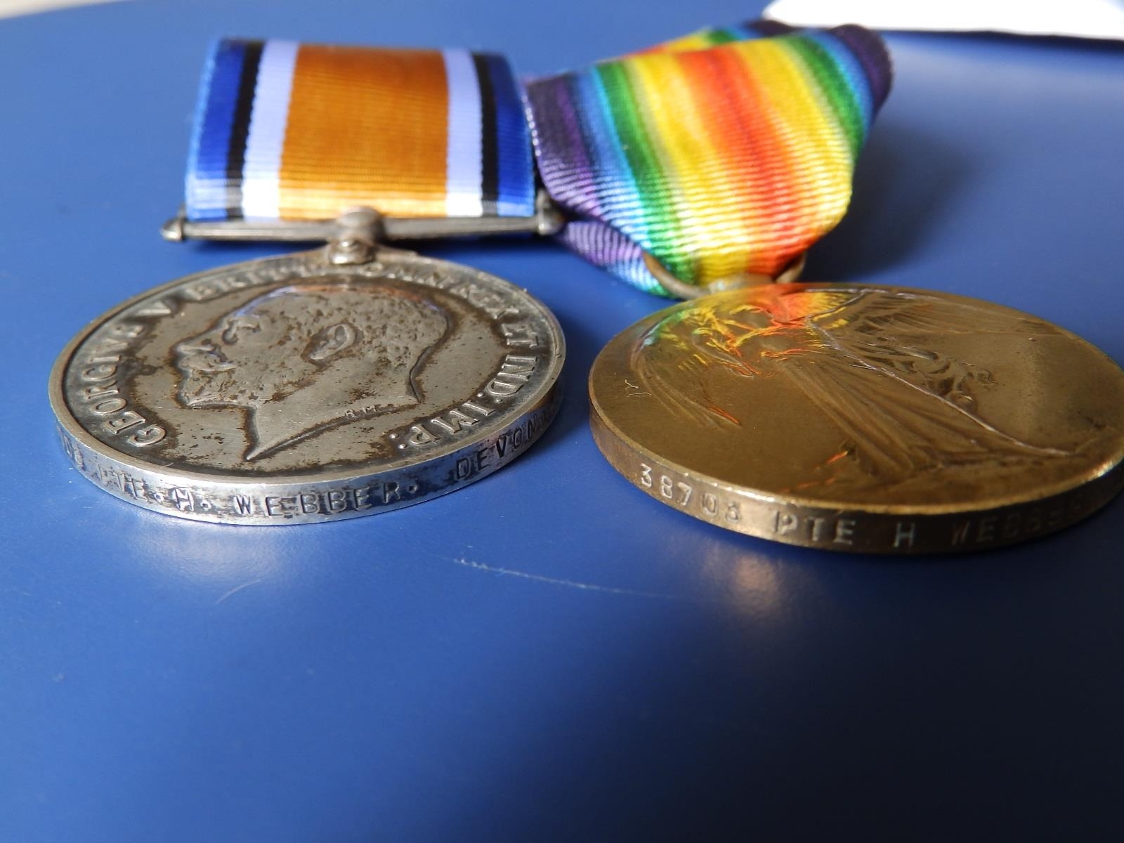 A WWI medal pair awarded to 38703 Pte. H. Webber, Devon Regiment. (2)