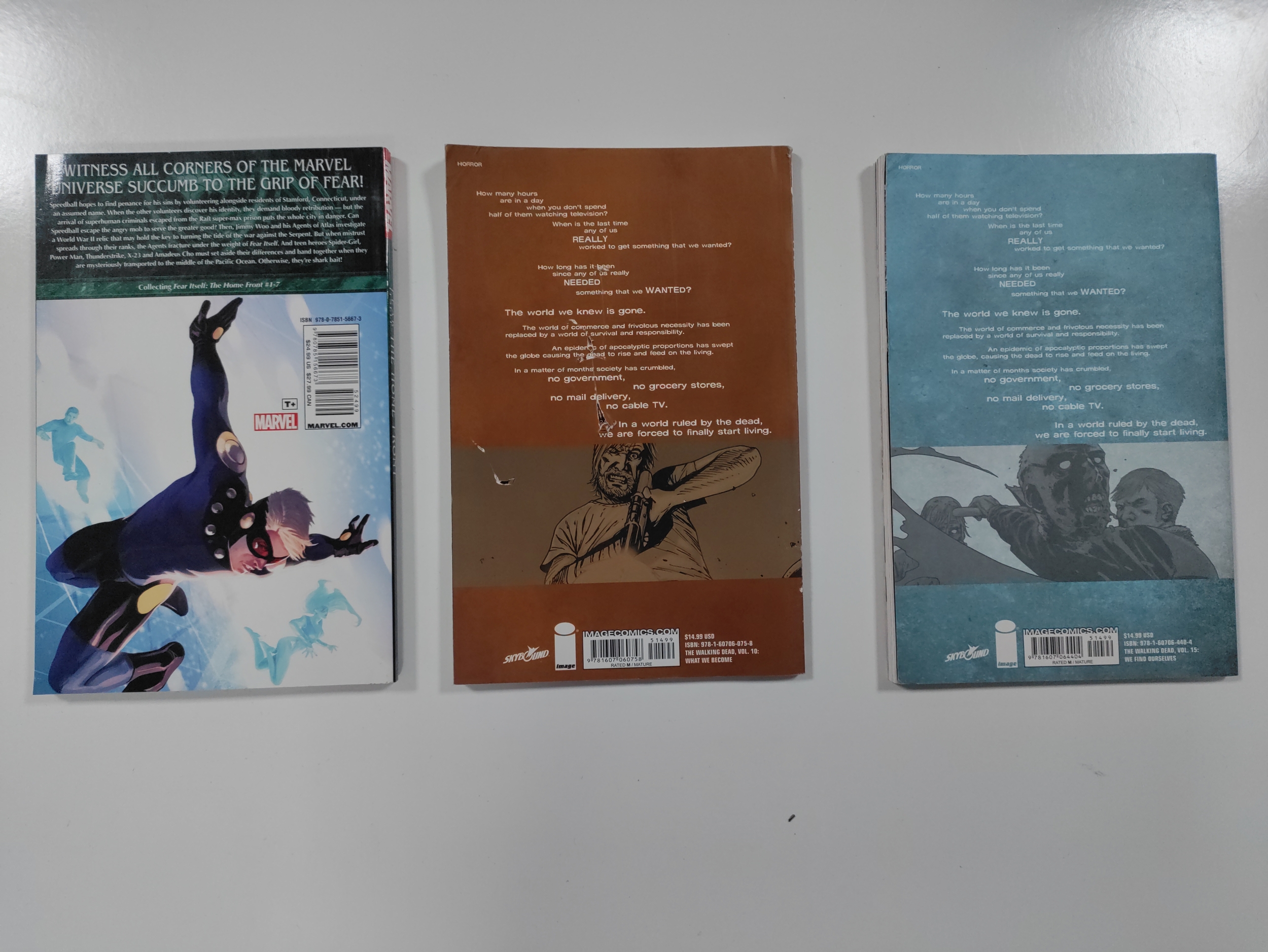 A collection of 3 comics. to include the walking dead volume 10 & 15 & marvel fear itself the home front
