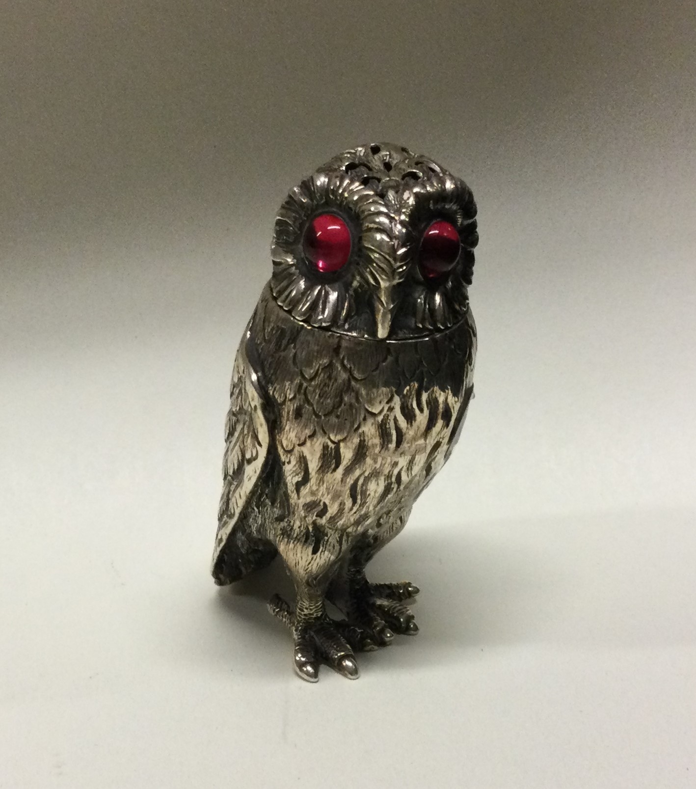 A Victorian silver novelty silver pepper in the form of an owl. London 1850. By George John Richards. Approx. 61 grams. Est. £400 - £600.