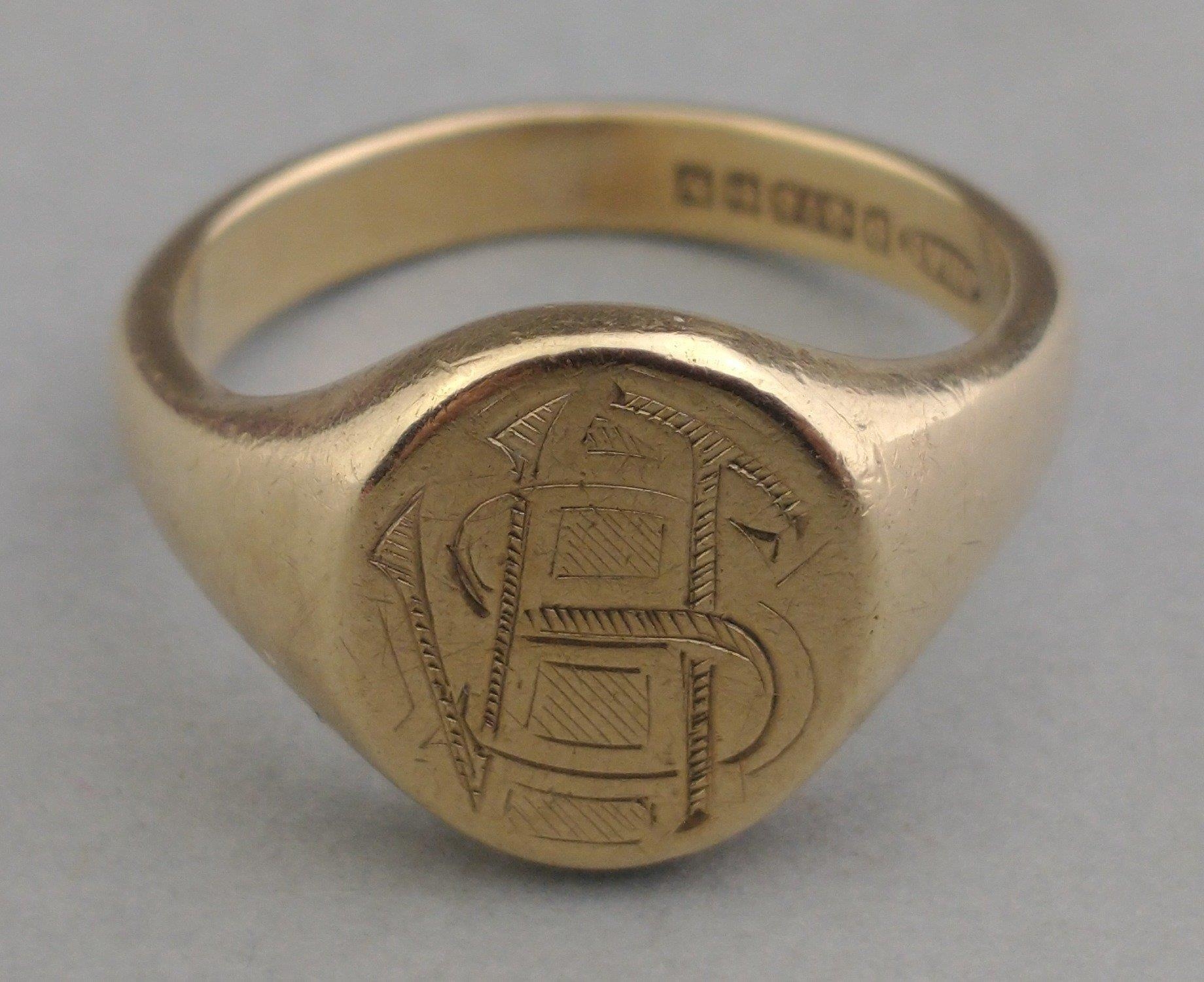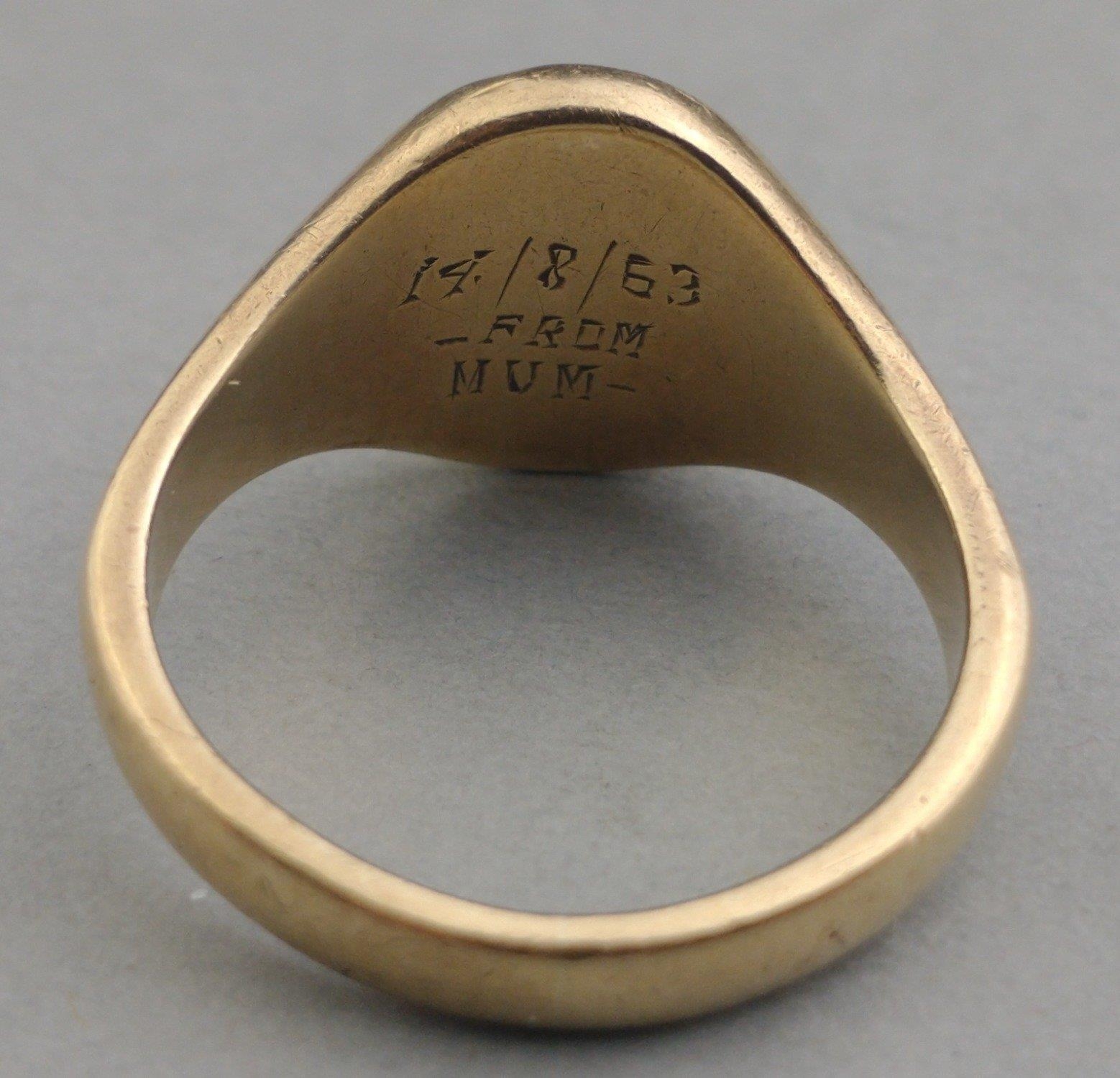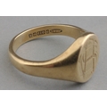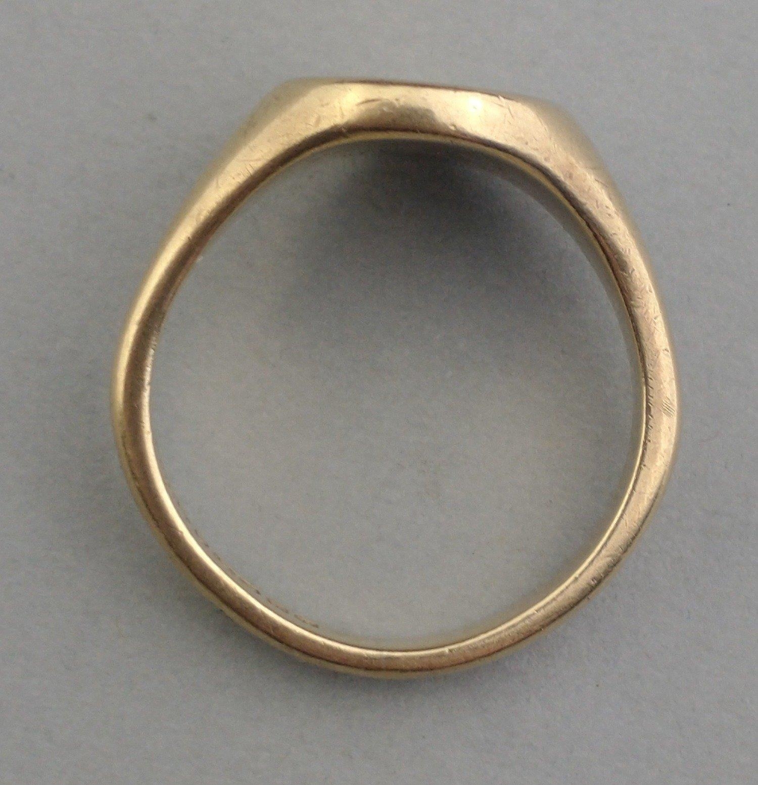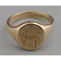 A chunky gold 9ct hallmarked gents signet ring. Size V, weight 9.5g approx