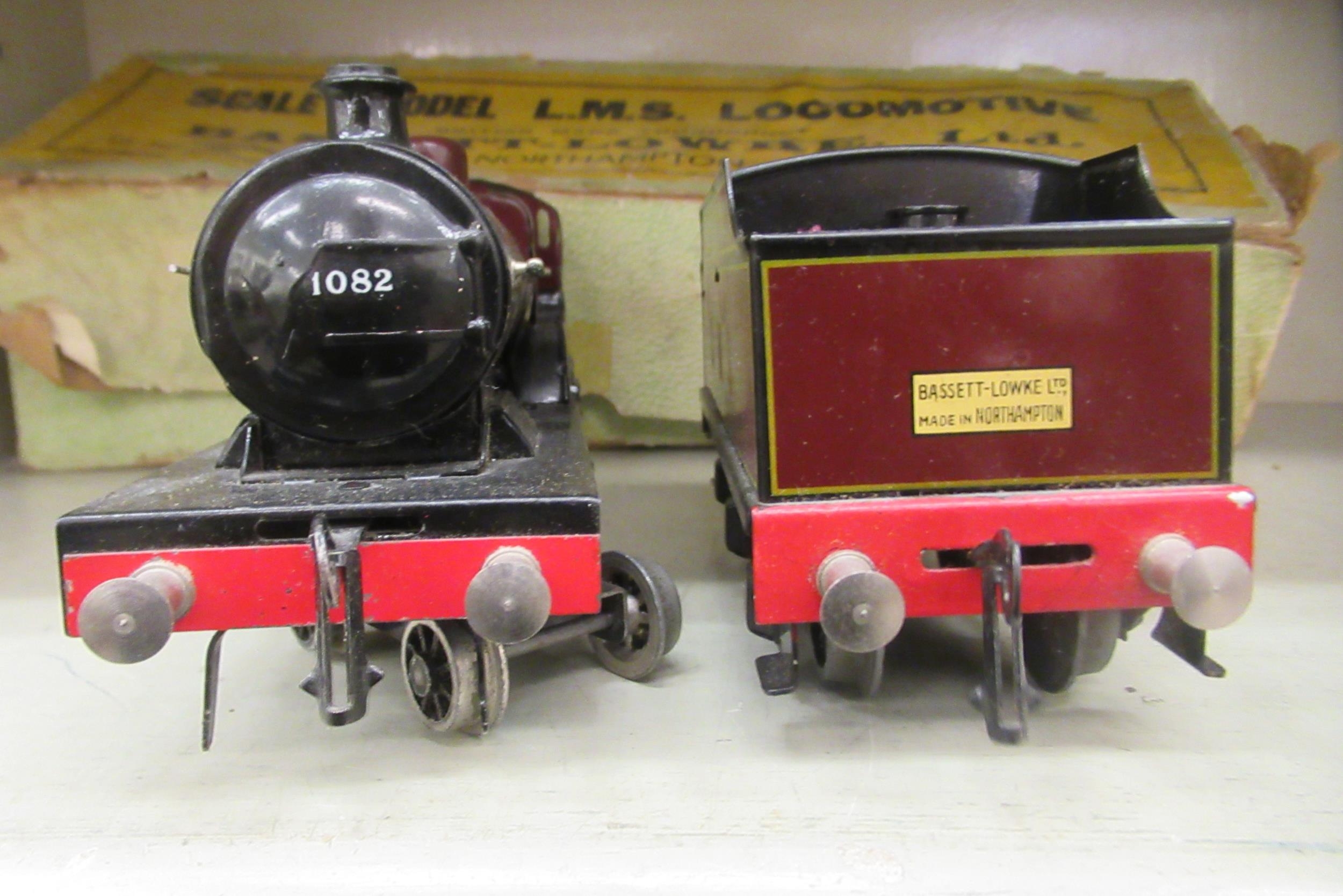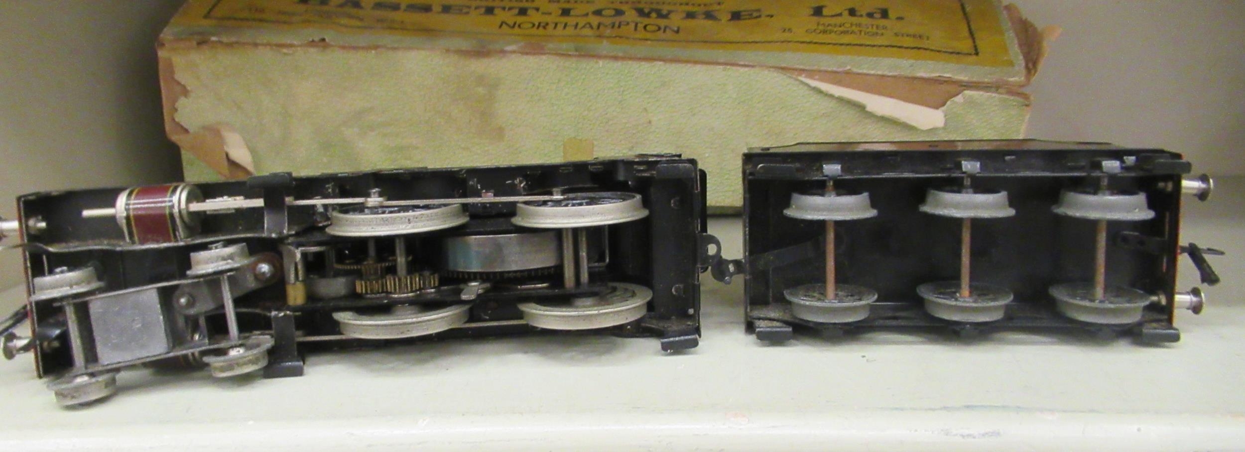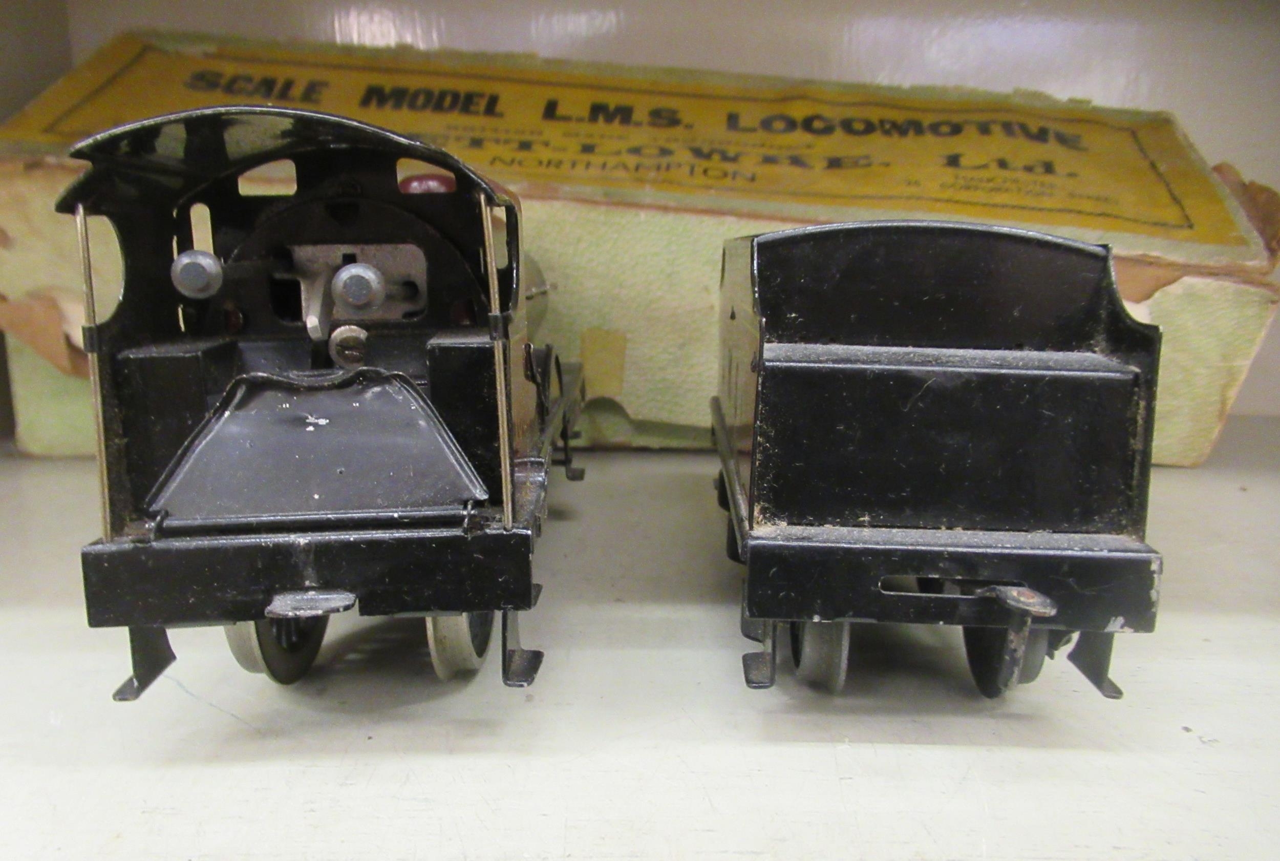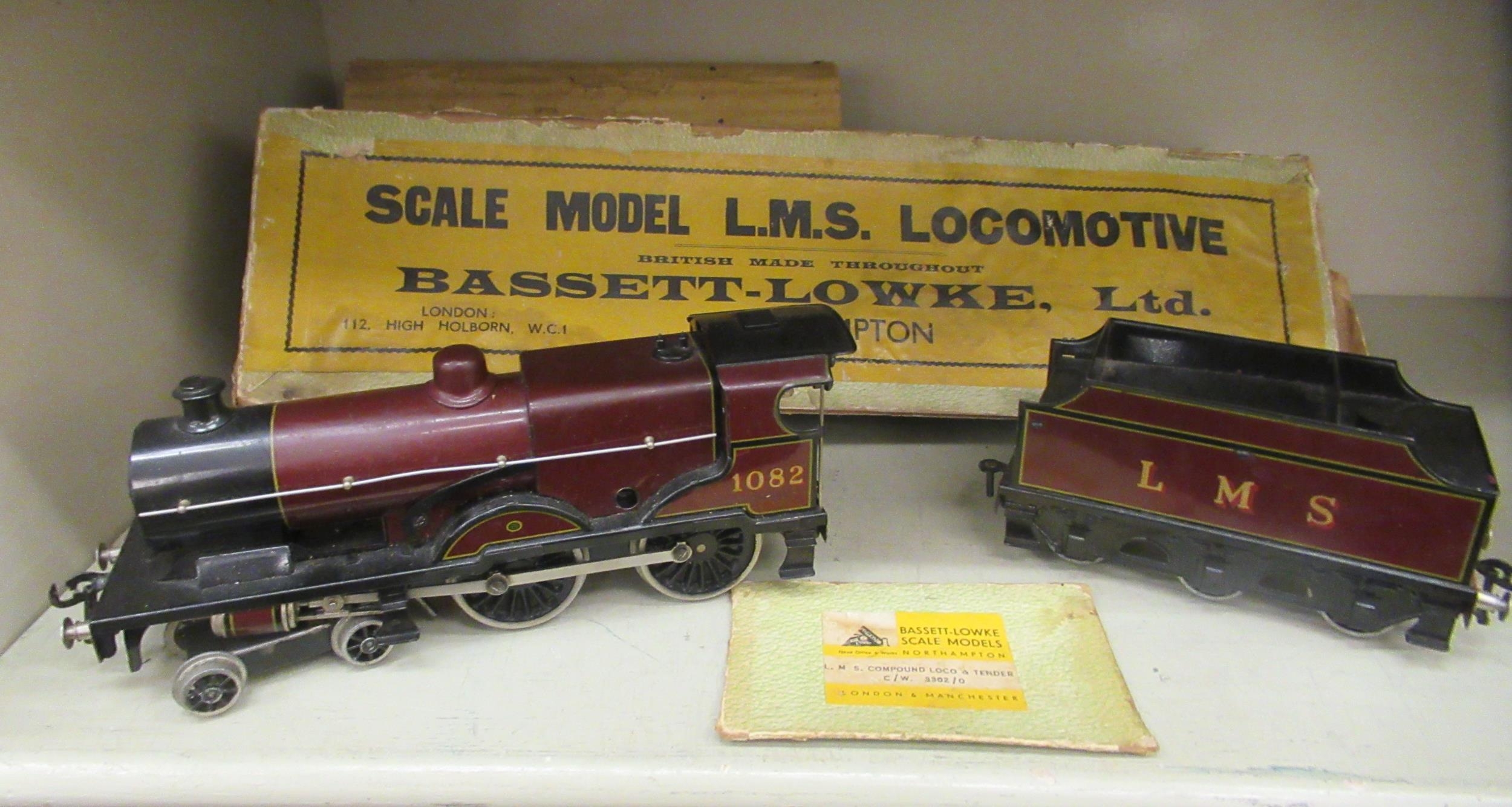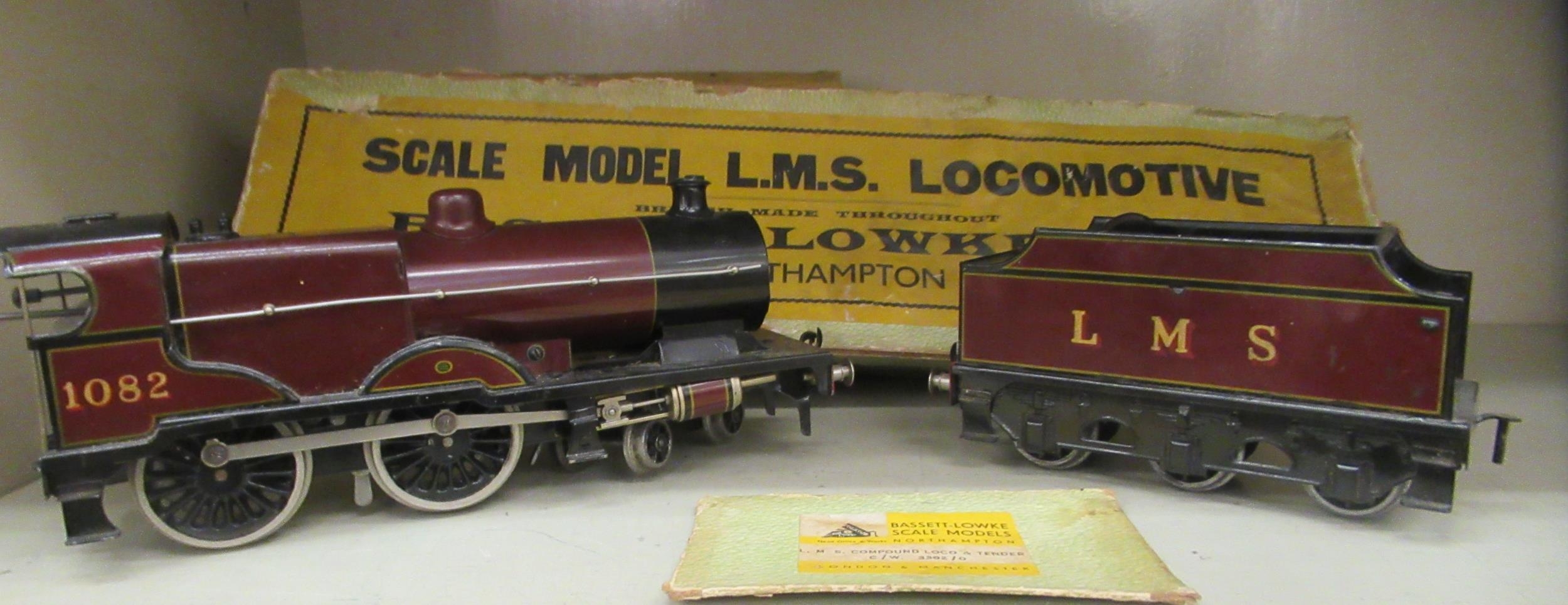 A Bassett-Lowke scale clockwork model 0 gauge 4-4-6 locomotive and tender, in maroon LMS livery boxed