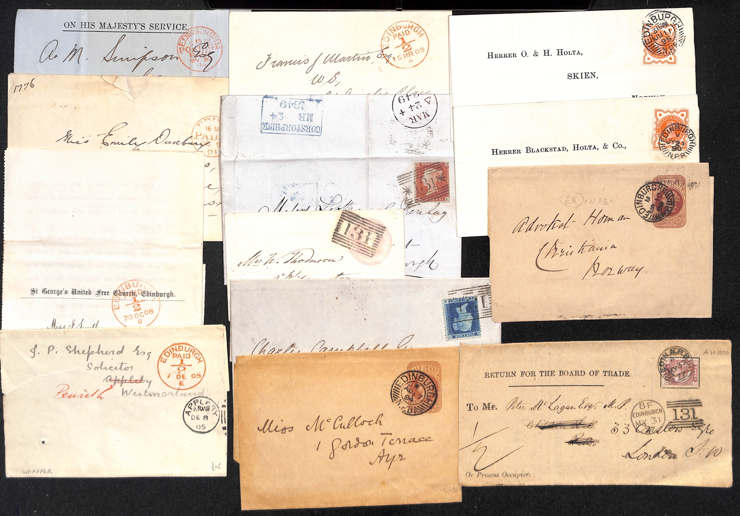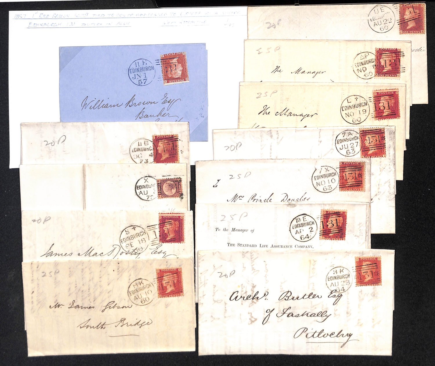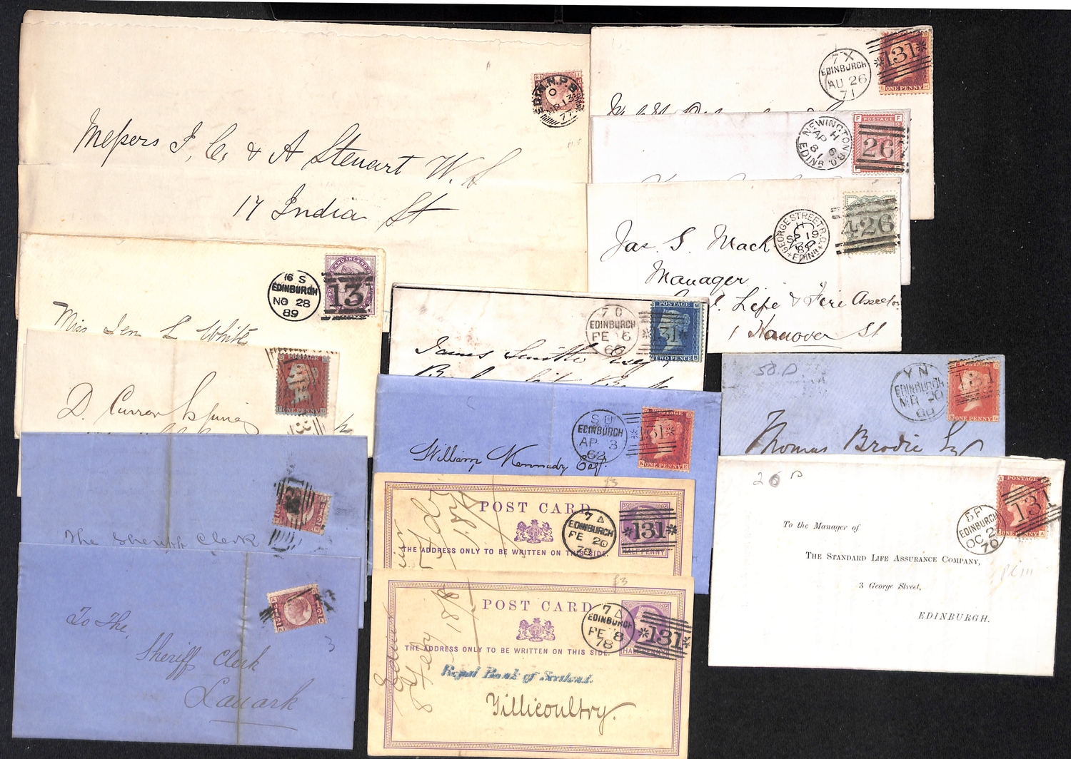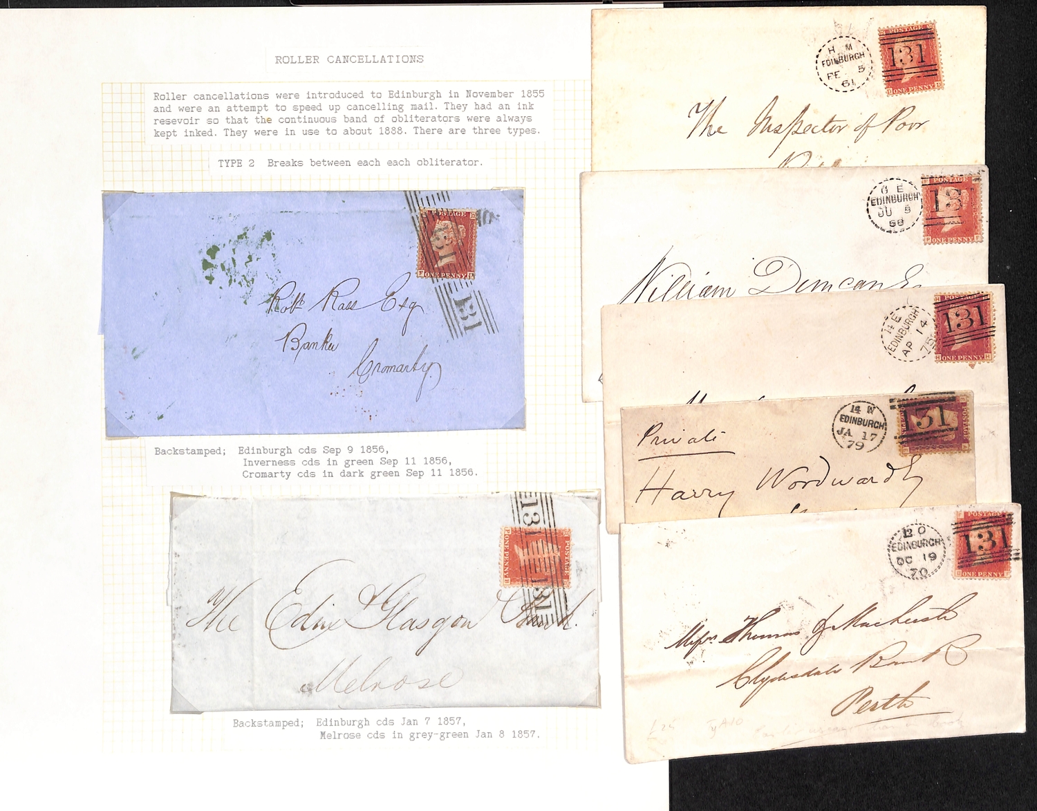 Cancellations. 1846-1908 Covers and cards with numeral cancels, duplexs including Brunswick Star and dotted types, 1857 duplex in blue, N.P.B datestamps, rollers, also Paid datestamps, etc. (58).