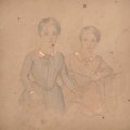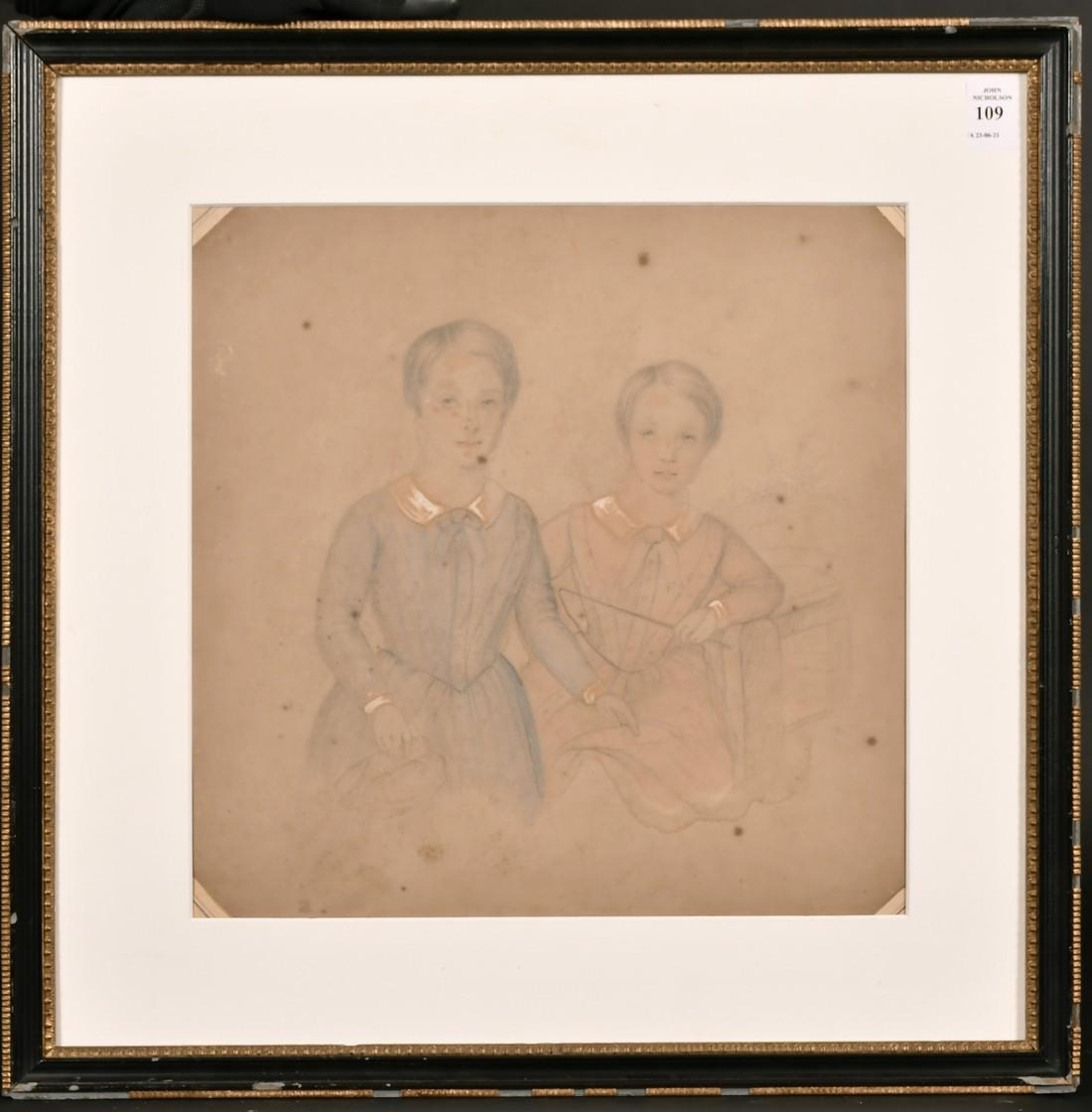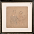 A 19th century pencil and watercolour study of two girls, 12" x 12".