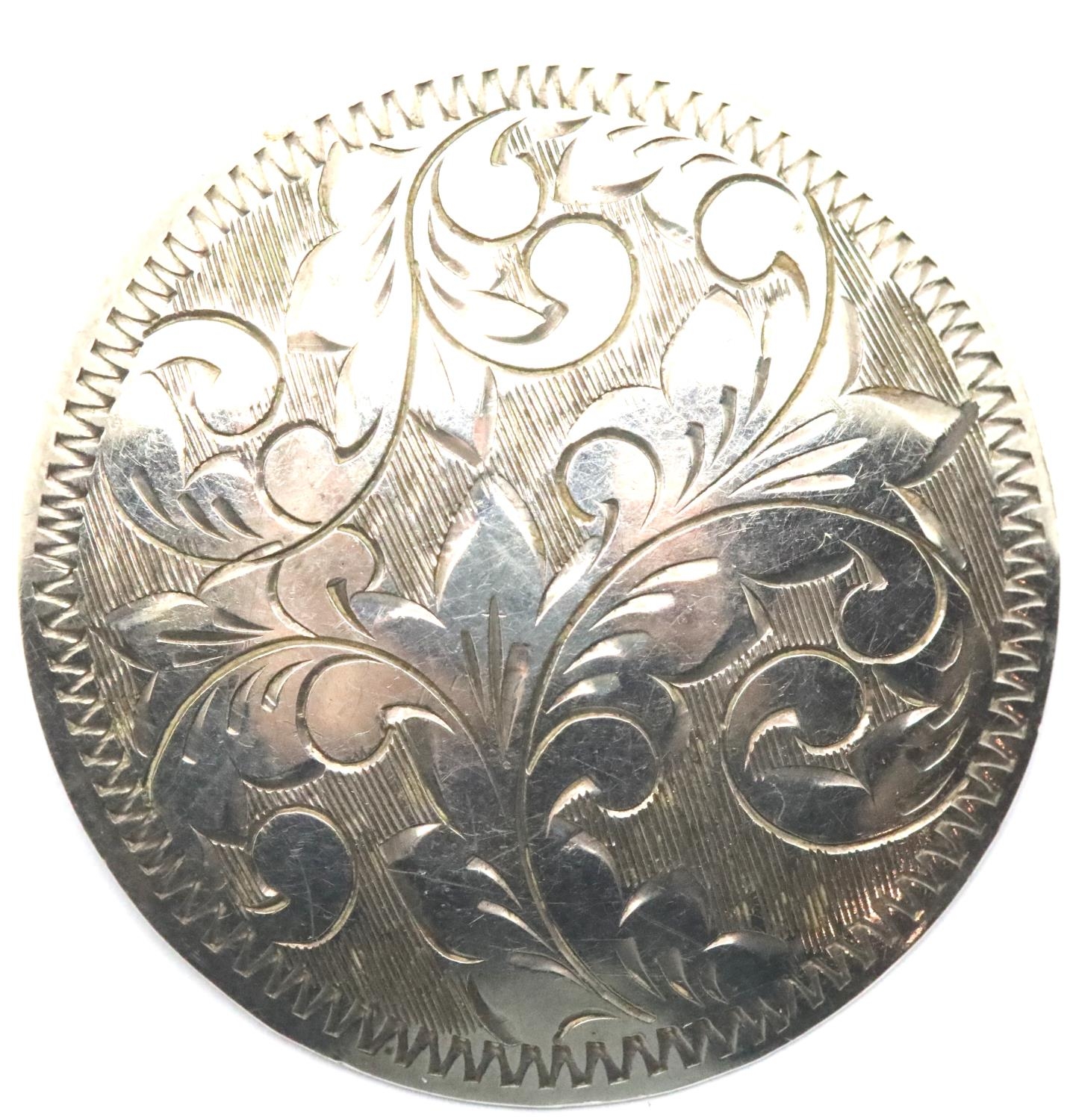 Silver engraved vintage brooch. P&P Group 1 (£14+VAT for the first lot and £1+VAT for subsequent lots)