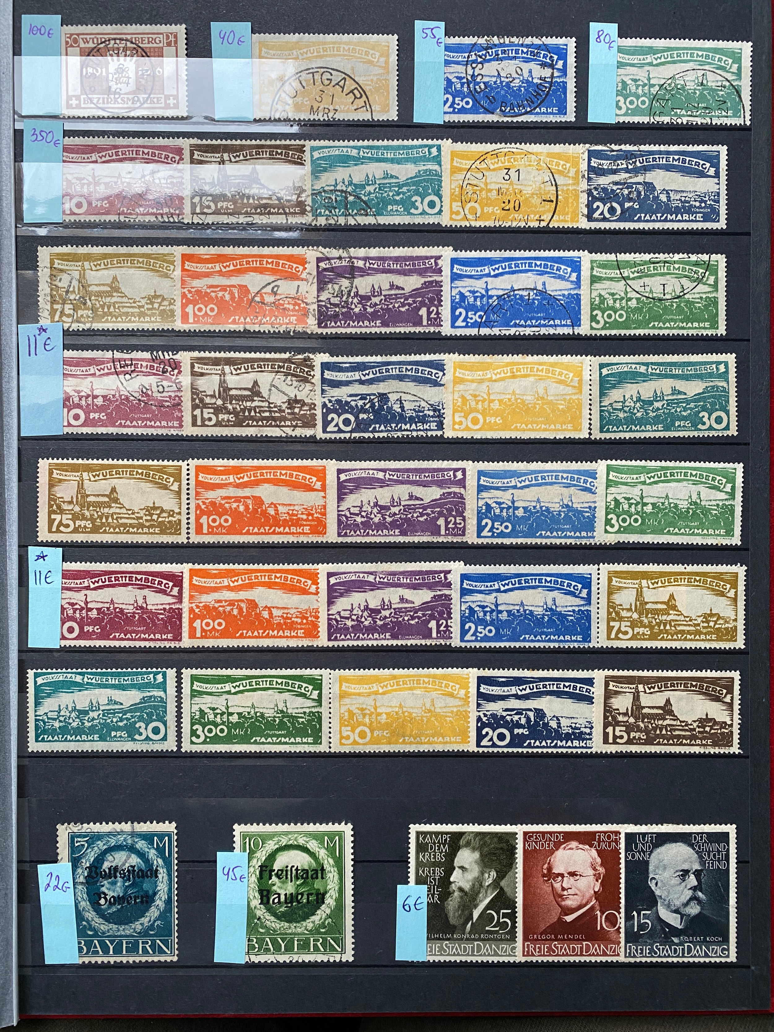 A collection in 2 stock books mainly mint, including blocks of inflation issues, Occupation issues, Saar, Wurtenberg, Malmedy, Eupen, sets and better values, good Cat value