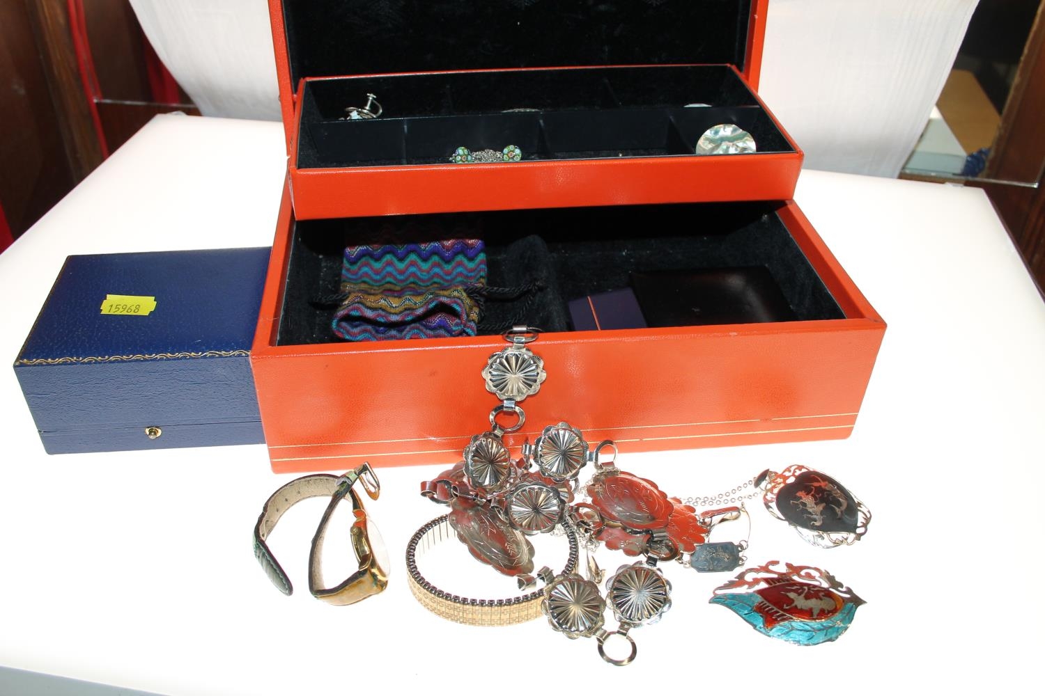 Jewellery case containing silver and costume jewellery, Mappin & Webb lady's watch, etc.
