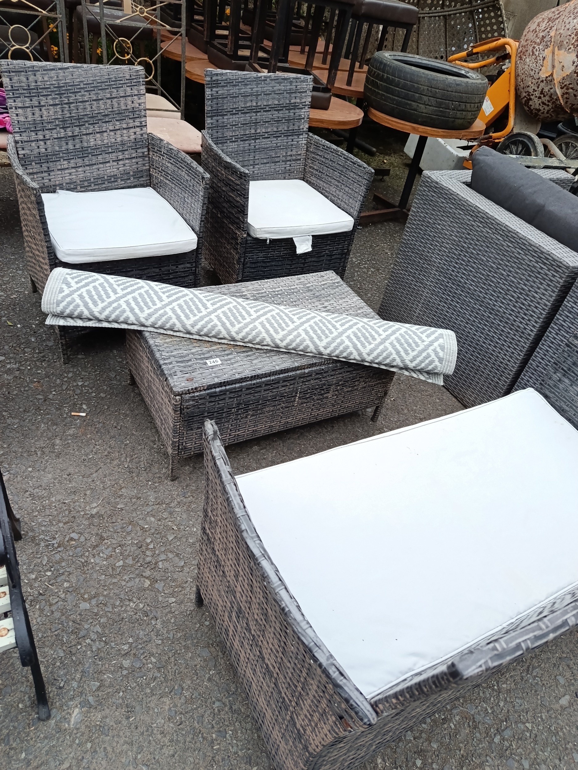 2 & 1 & 1 Rattan Garden Set with Mat