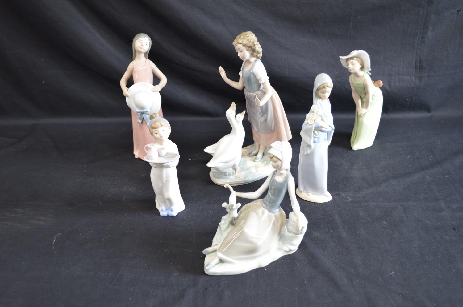 Group of six Lladro and Nao figures of young ladies