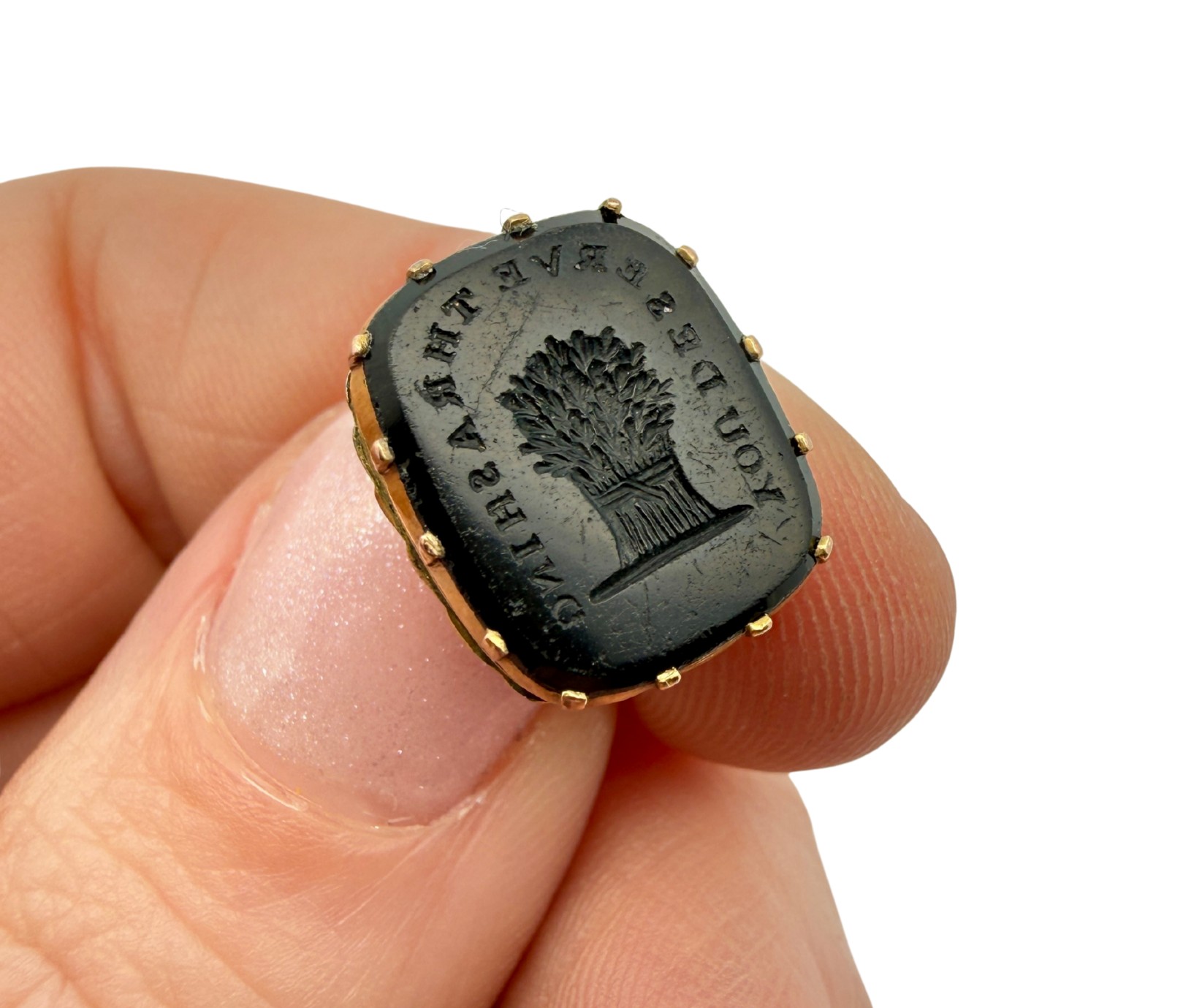 Antique 'You Deserve a Thrashing' Intaglio Seal Fob. Weighing 3.20g. Very good condition.