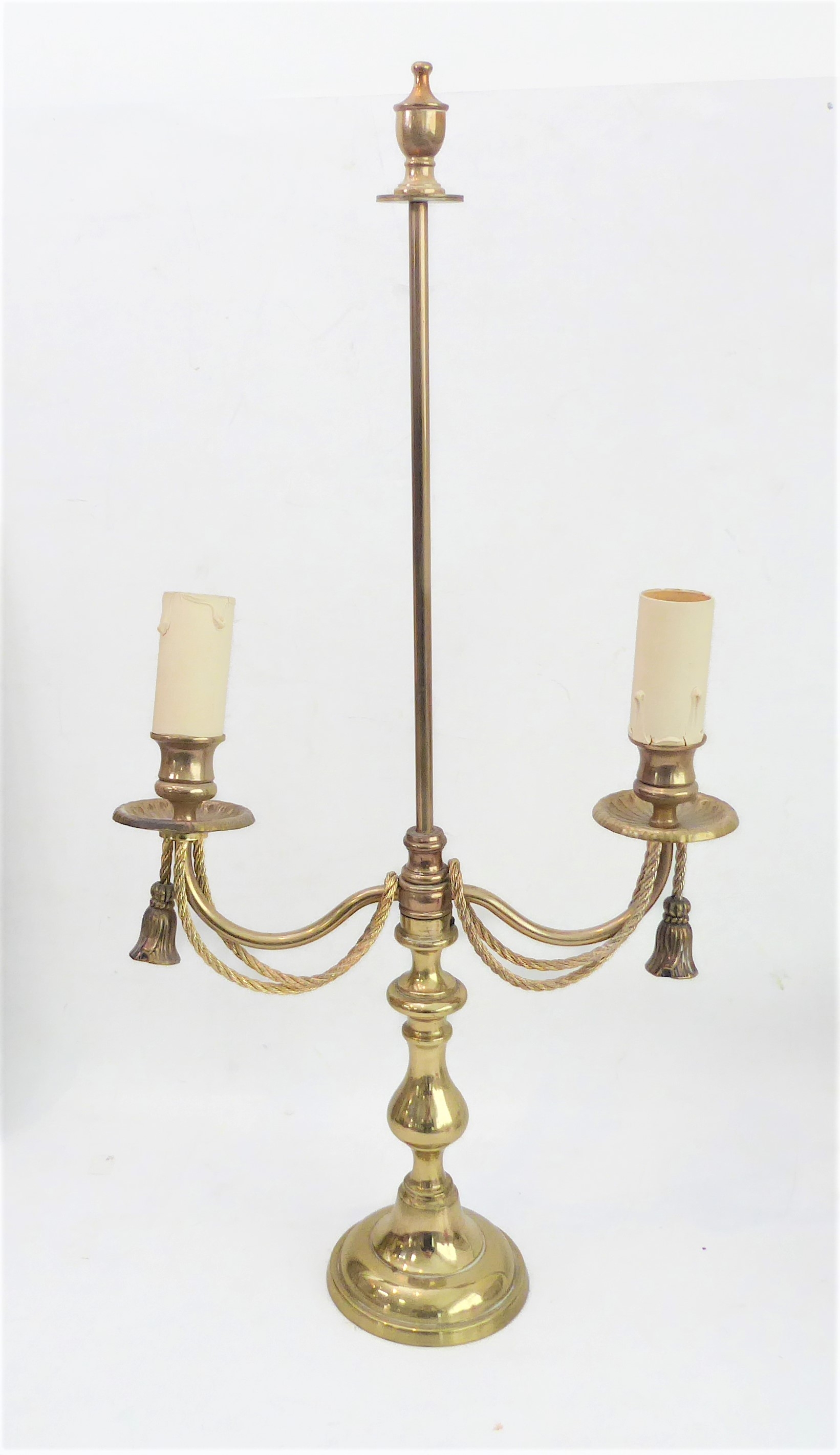 a brass two-light adjustable table candelabra;