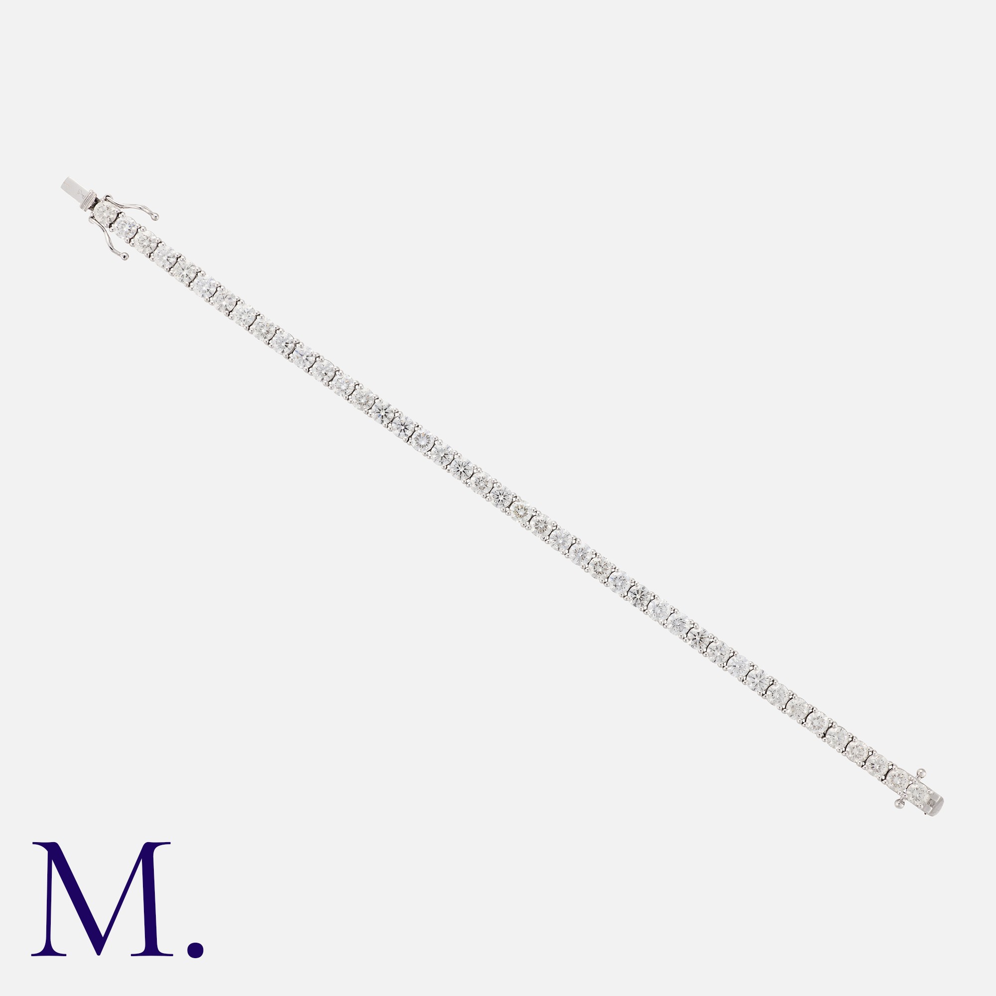 A 10.30ct Diamond Line Bracelet in 18k white gold, comprising a series of interlocking links each set with a round cut diamond. All diamonds totalling approximately 10.30cts. Stamped 750 for 18 carat gold.