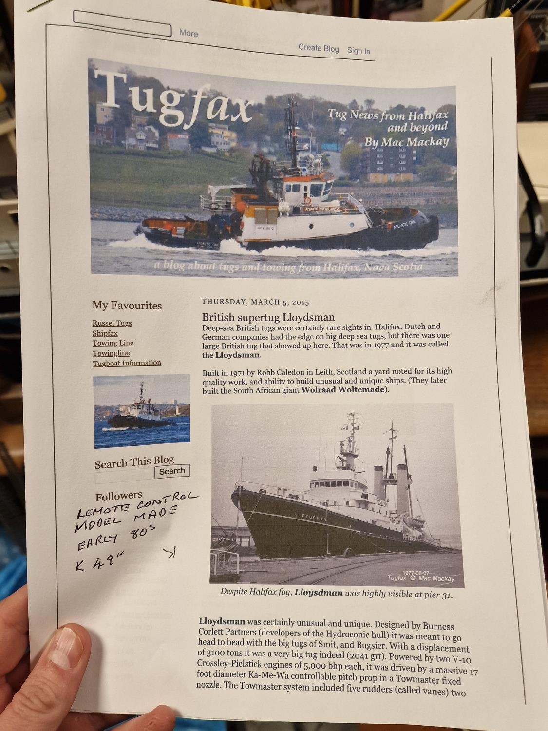 Large Lloydsman Tug Sailing Boat - Working Order once the Remote electronics are assembled