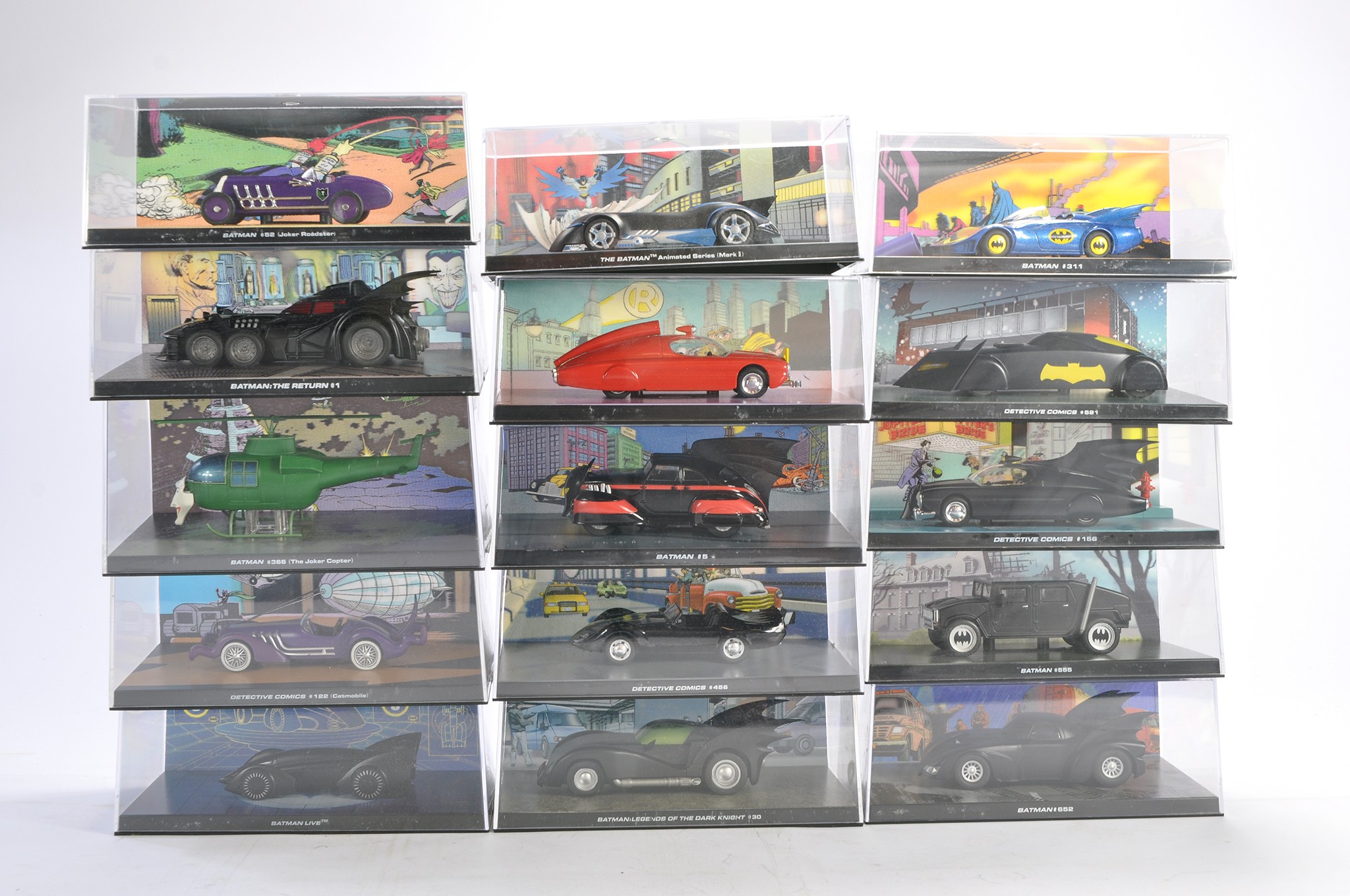 A group of fifteen Eaglemoss DC Comics - Batman 1/43 vehicles as shown. Look to be without fault in original display cases.