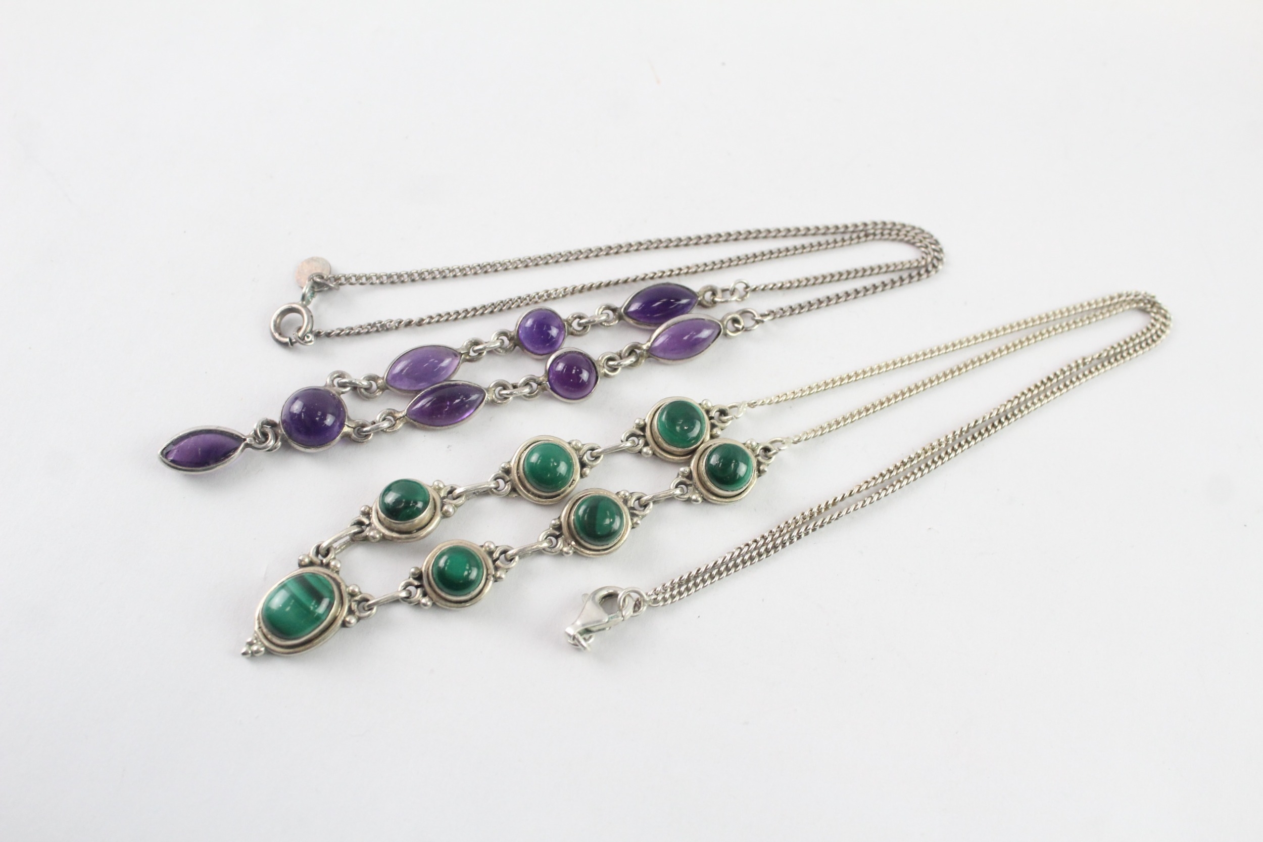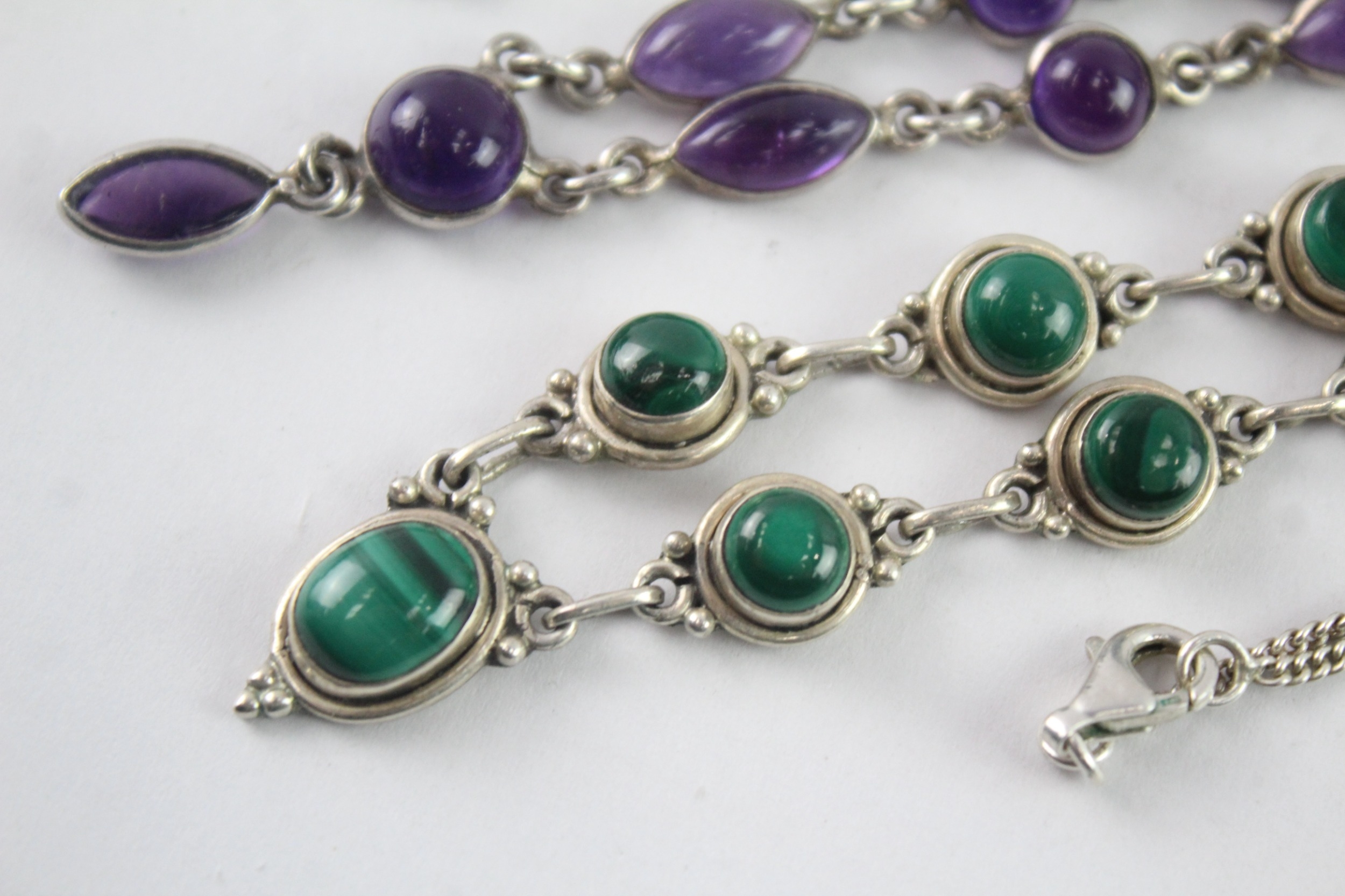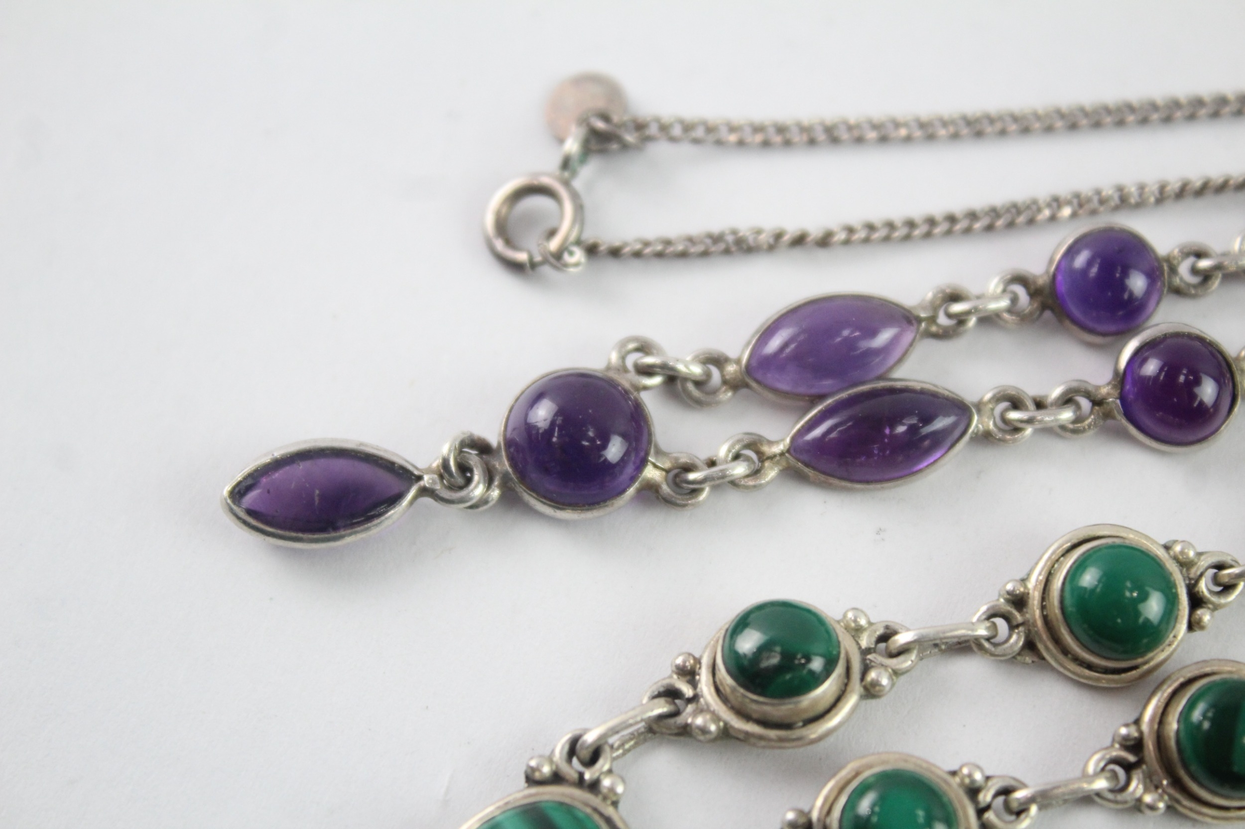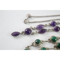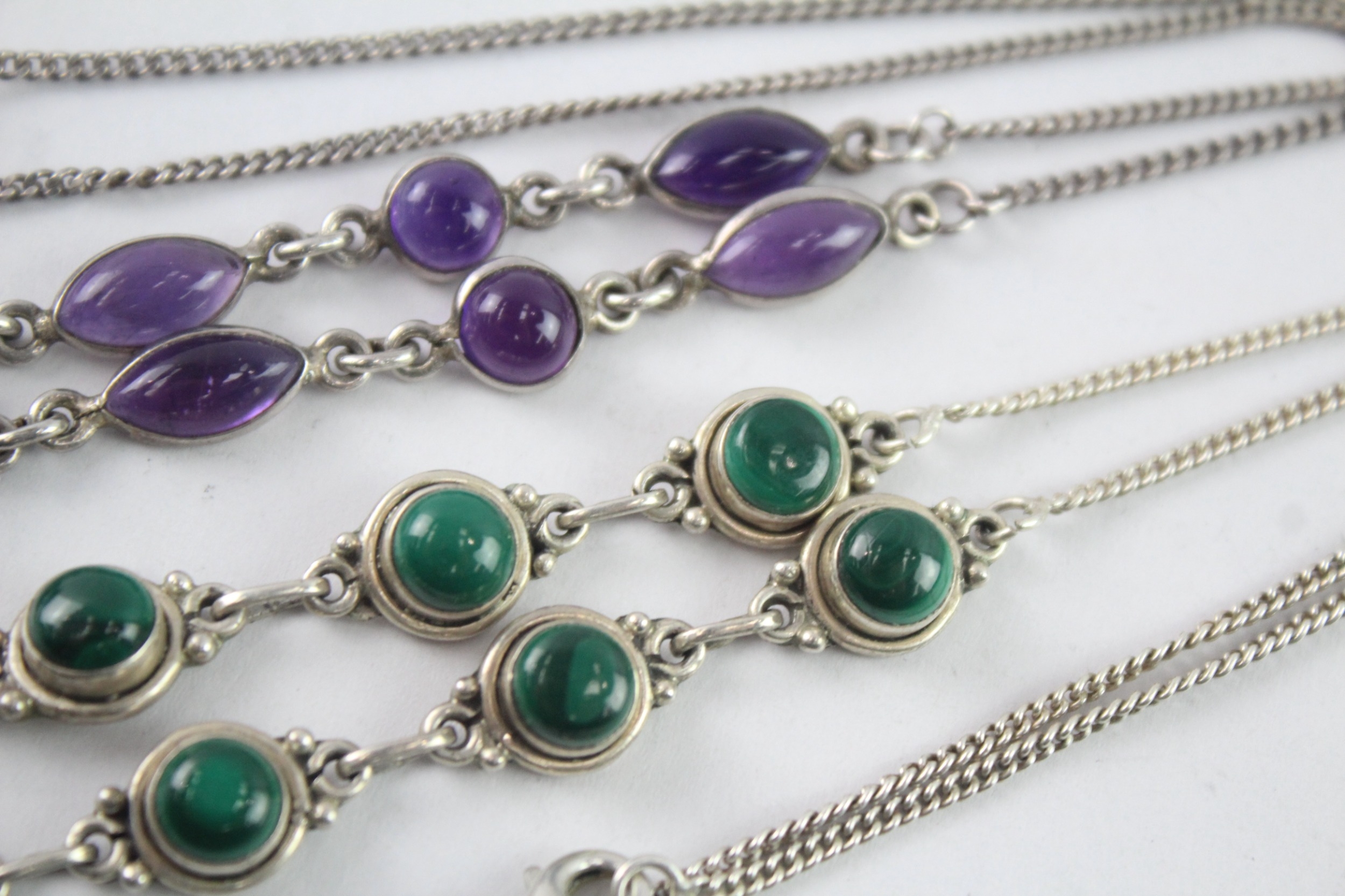 Collection of Sterling Silver Gemstone Necklaces inc. Malachite, Amethyst x 2 (25g)