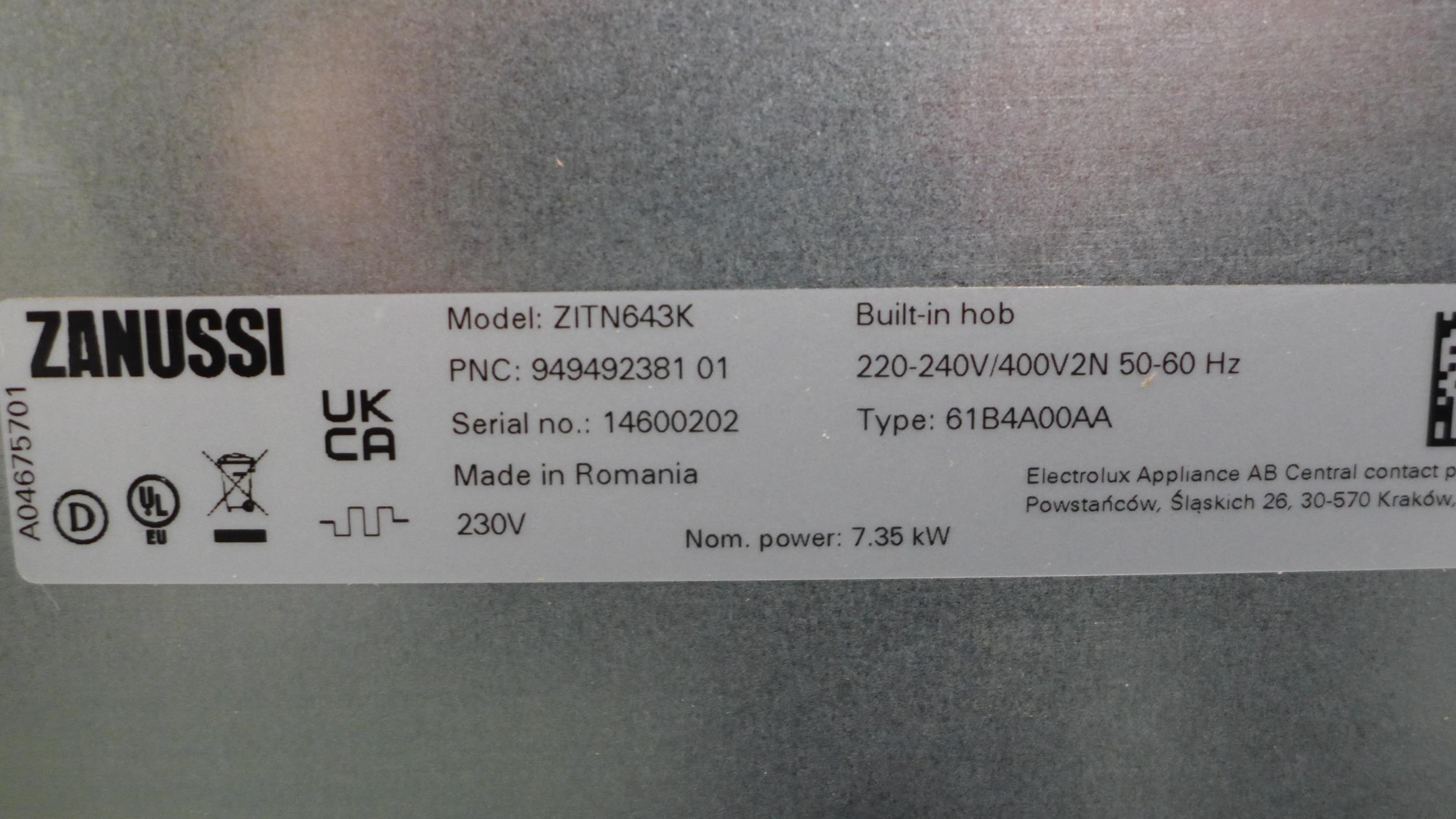 Two x Zanussi 4-Zone Induction Hobs (H44XW590XD520) - (ZITN643K) Original RRP £249.17 Inc. Vat * This Lot Is Subject To Vat