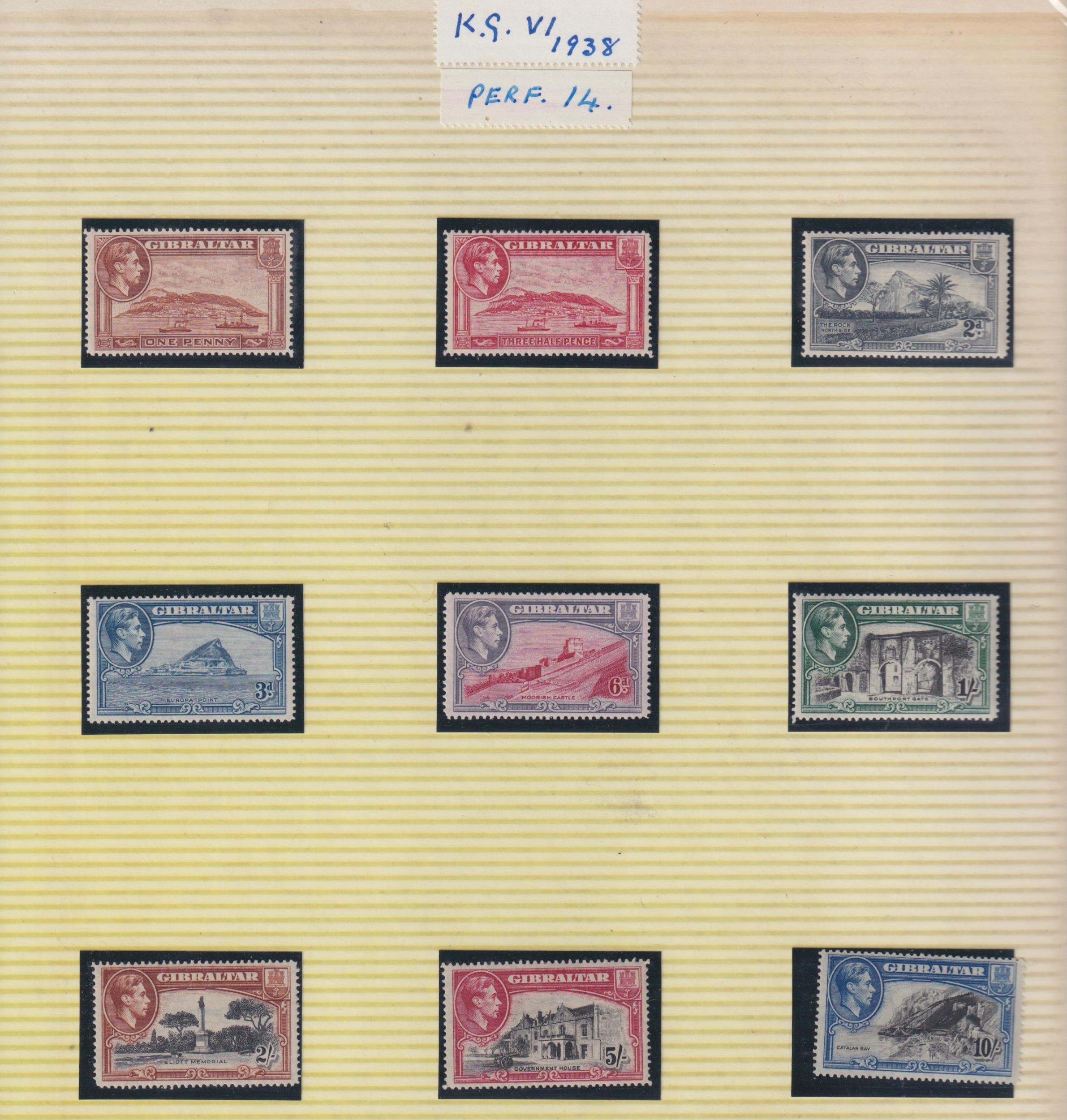 A collection of KGVI mint issues to £1, including some perf variants, noted 1/-, 2/-, 5/-, 10/- all perf 14, Cat £1000+