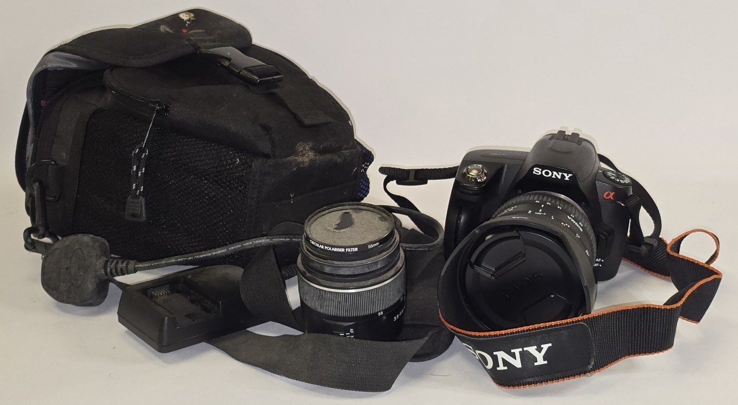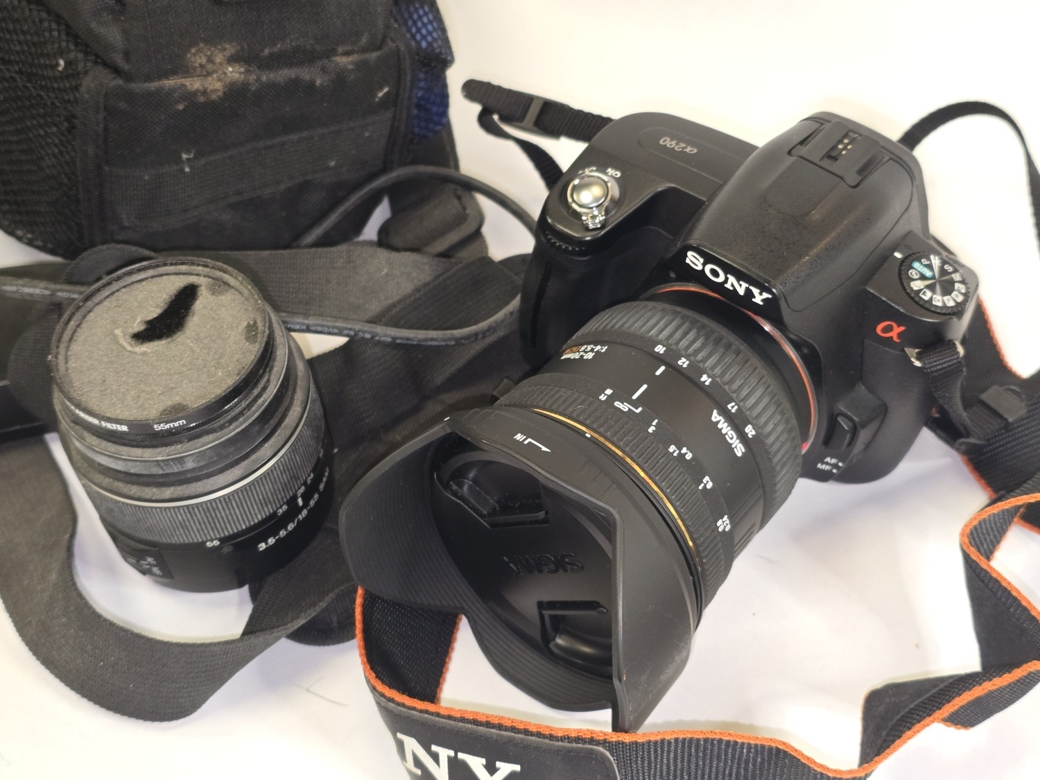Sony A290 DSLR camera together with Sigma 10-20mm lens and Sony 18-55 SAM lans.