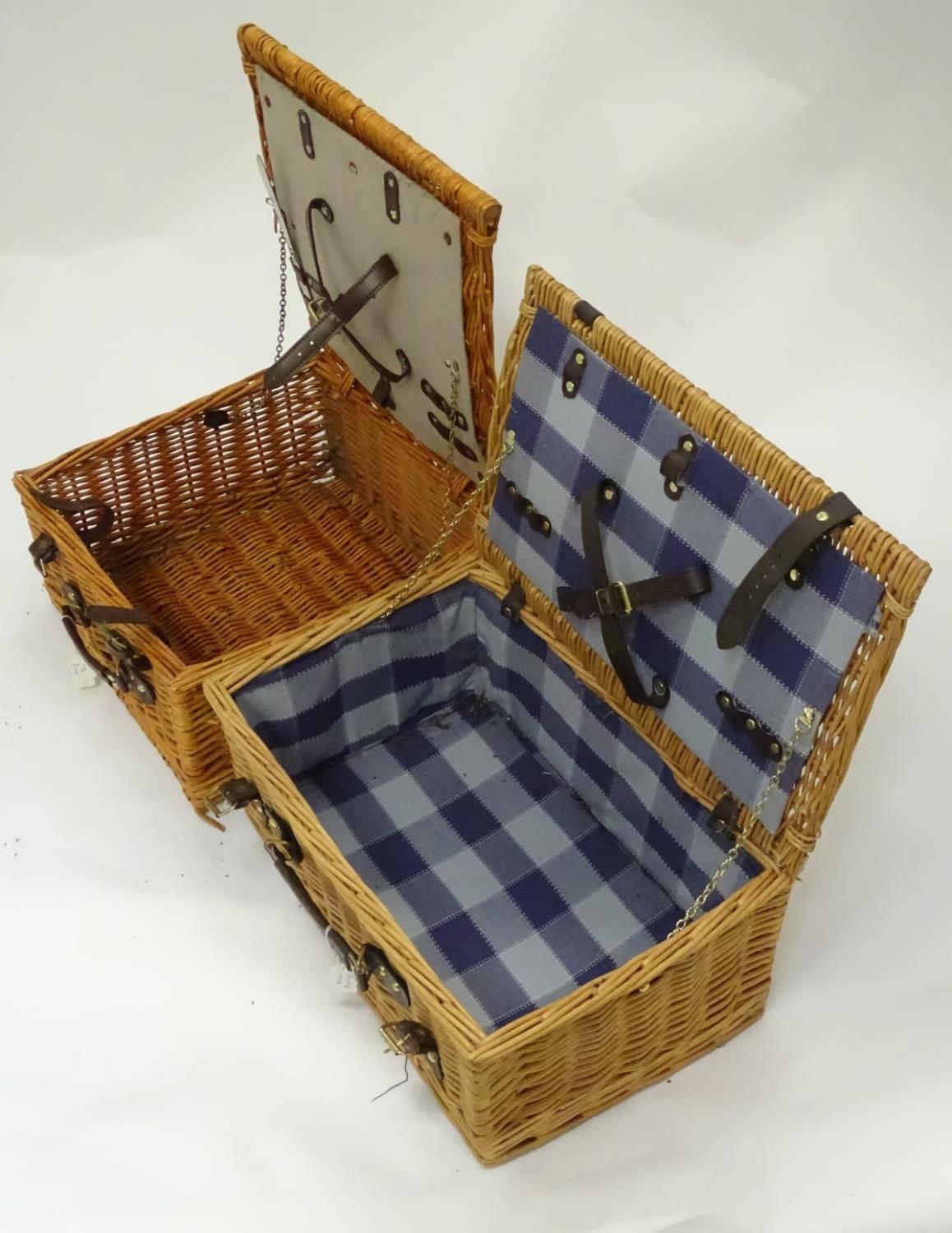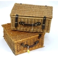 Two fitted picnic baskets, size approx. 18'' x 11 1/2'' x 8 1/2'' and 16'' x 15'' x 8 1/2''