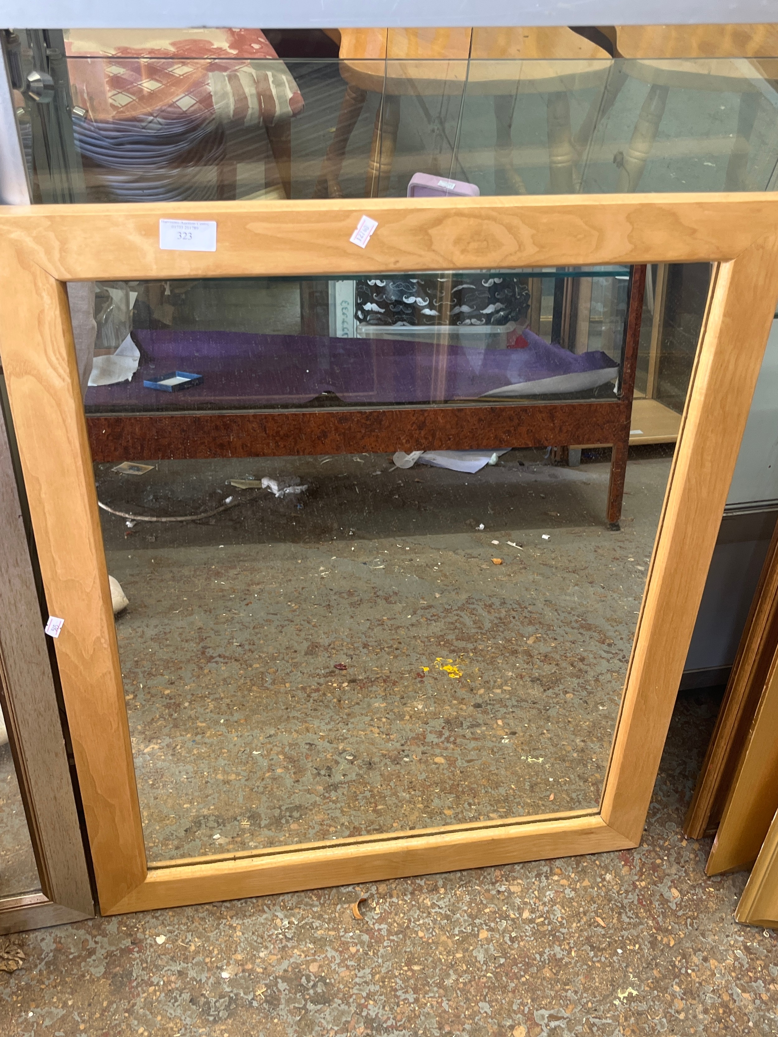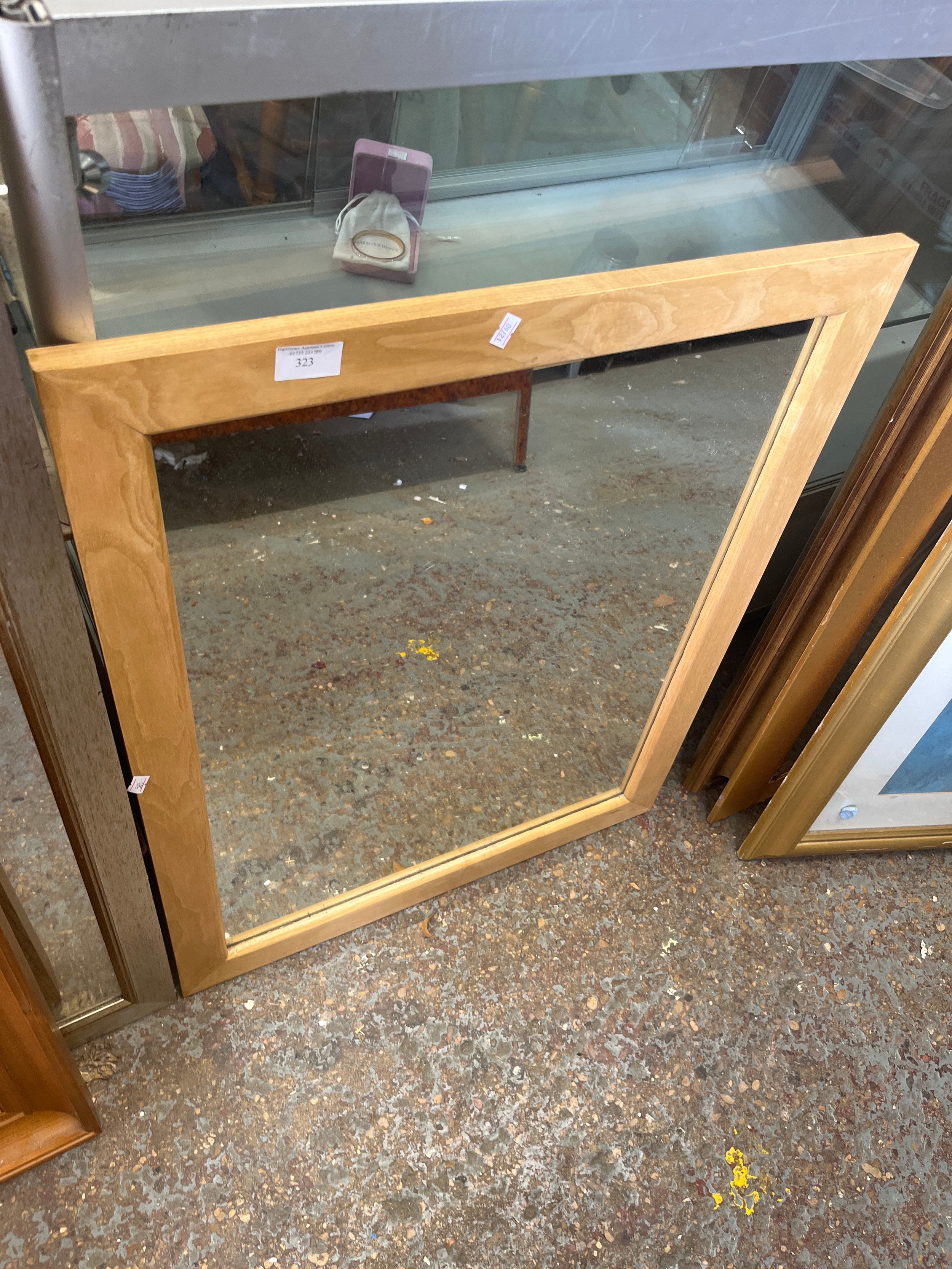 Light wood framed wall mirror