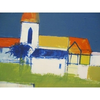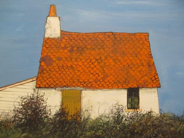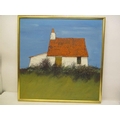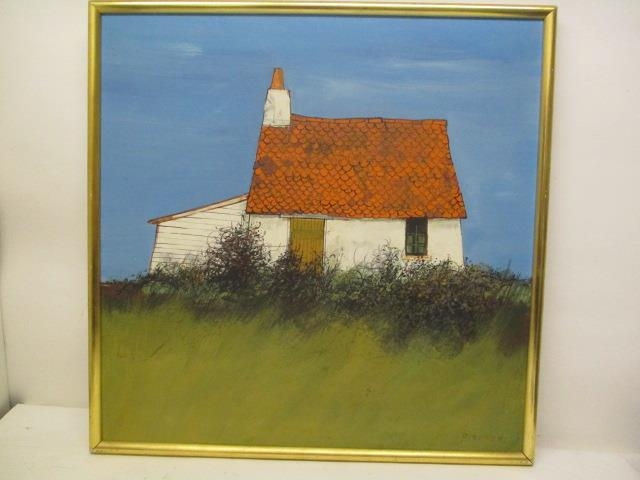 David Humphreys (1937) -a view of a cottage under a blue sky, signed lower right corner, oil on hardboard, 24" x 24", in a gilt frame