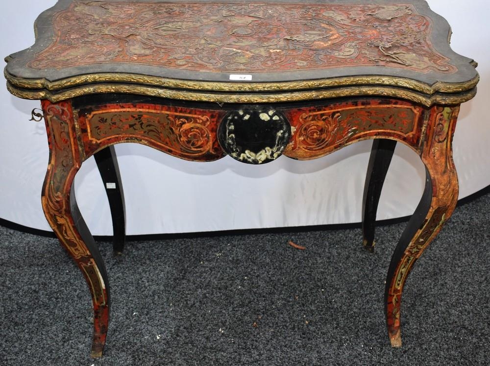 A Napoleon III Boulle marquetry serpentine card table, for restoration, 89cm wide
