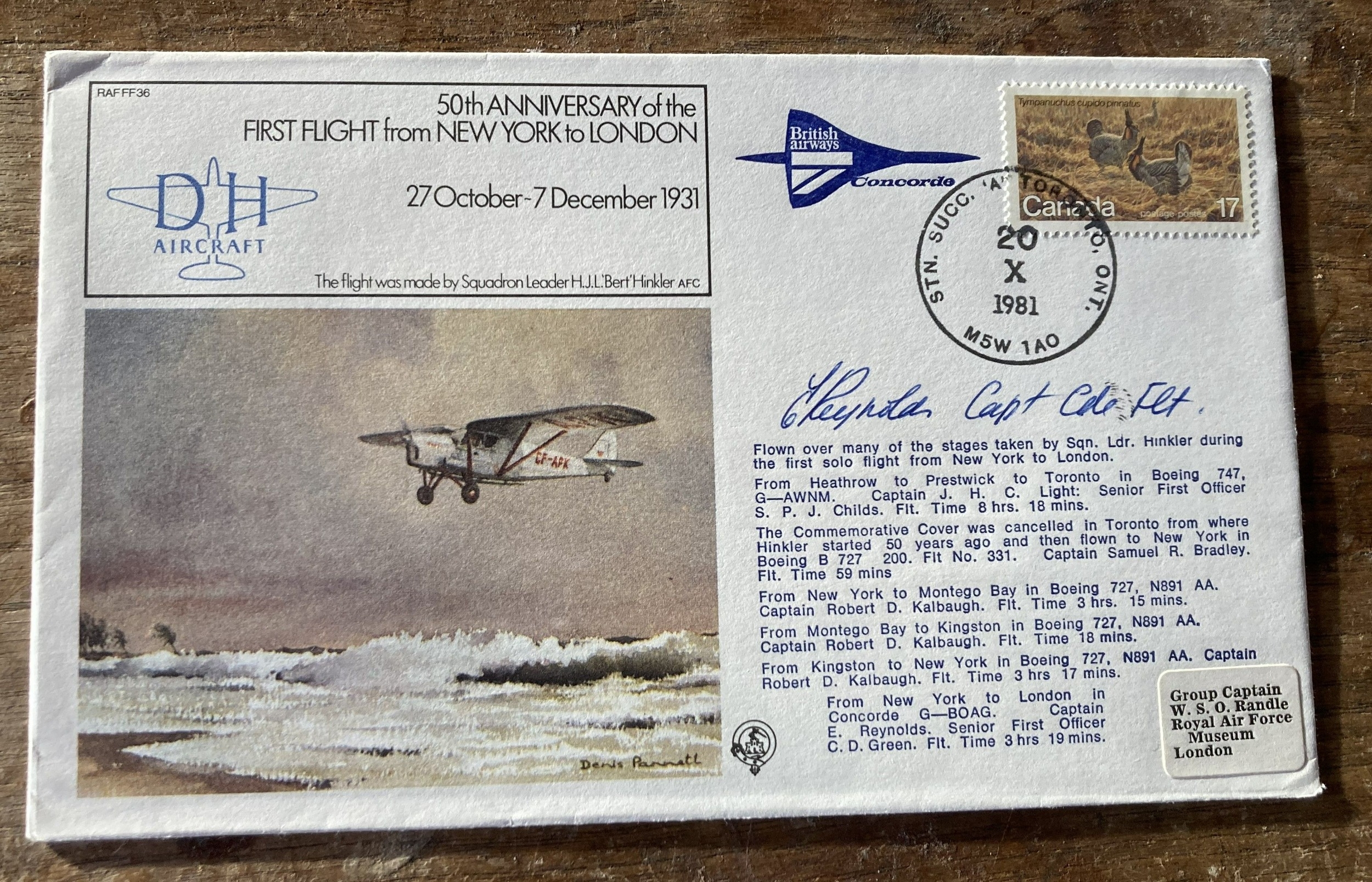 RAF FF36 - 50th anniv of the First Flight from New York to London 27 Oct - 7 Dec 1931 signed Capt E Reynolds Cdr Flt PM 20 Oct 1981 FDC. Single Vendor collection. Good condition. We combine postage on multiple winning lots and can ship worldwide. UK postage from £5.99, EU from £7.99, Rest of World from £9.99.