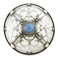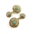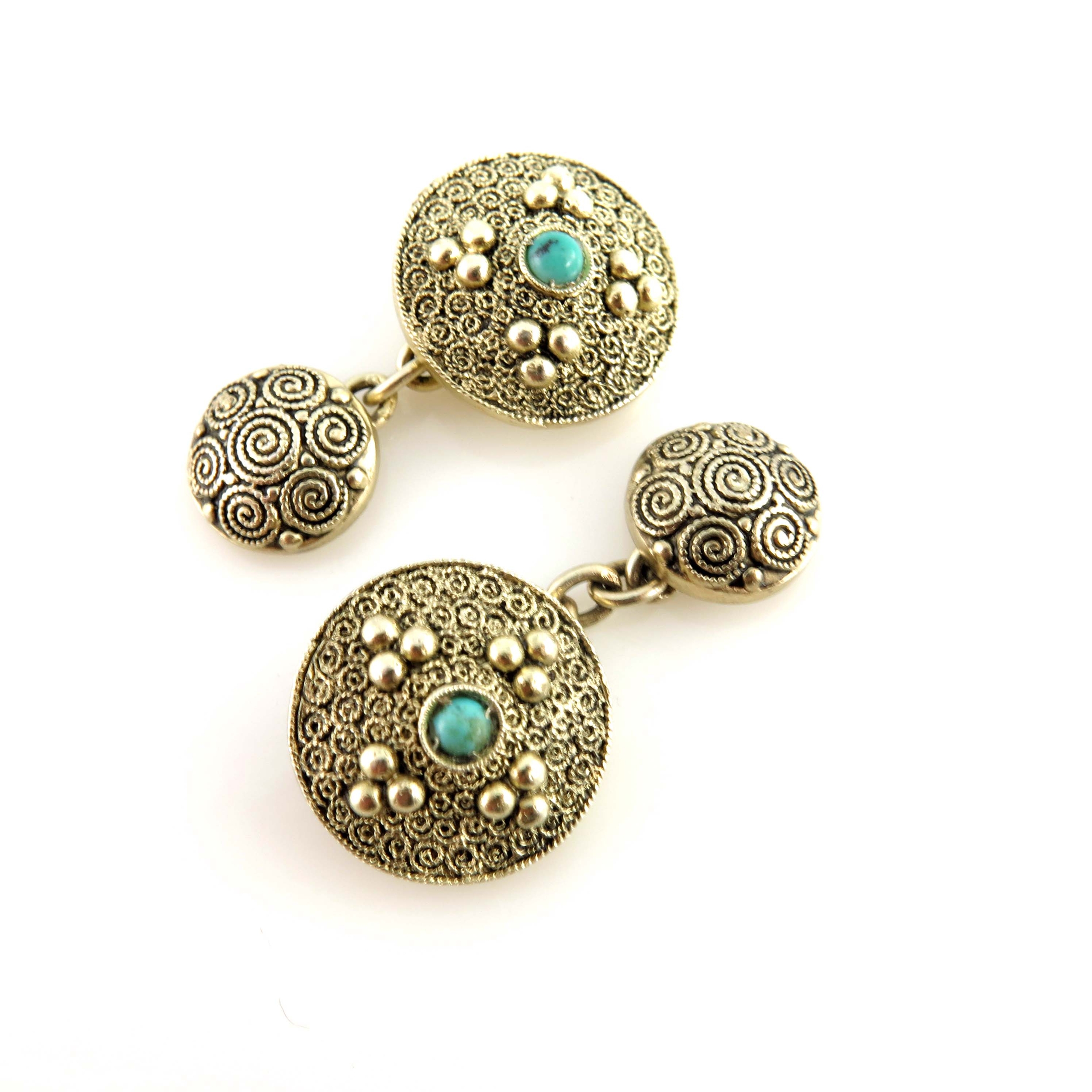 Theodor Fahrner, a pair of Jugendstil silver and turquoise cufflinks, circa 1900, circular with coiled rope-twist filigree and beaded decoration, set with central cabochons, maker's marks for Theodor Fahrner, stamped STERLING, diameter 1.2cm, 8g