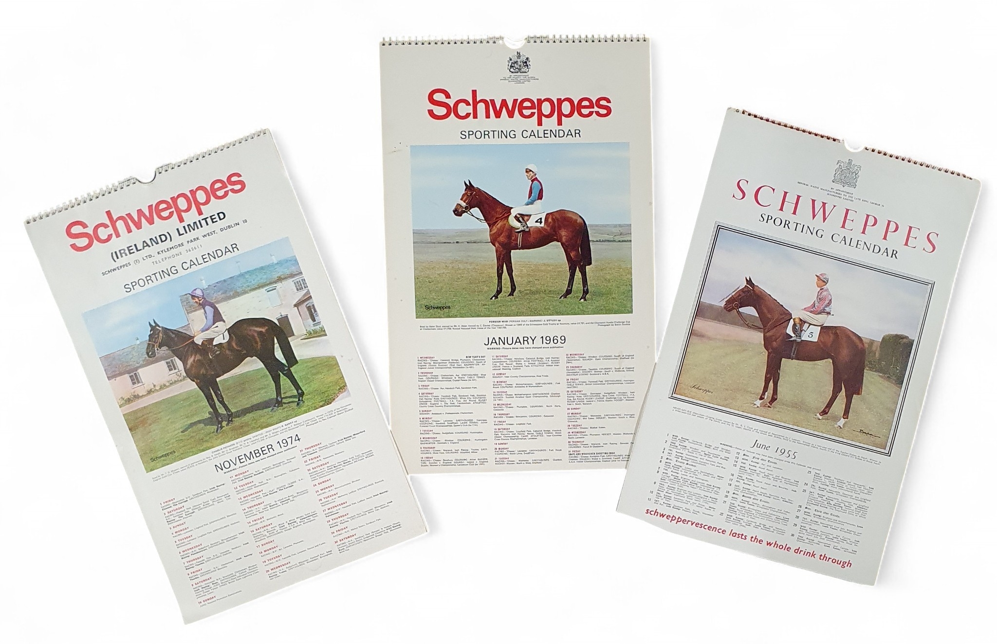 A group of Schweppes vintage Calendars along with a group of magazines and other items.