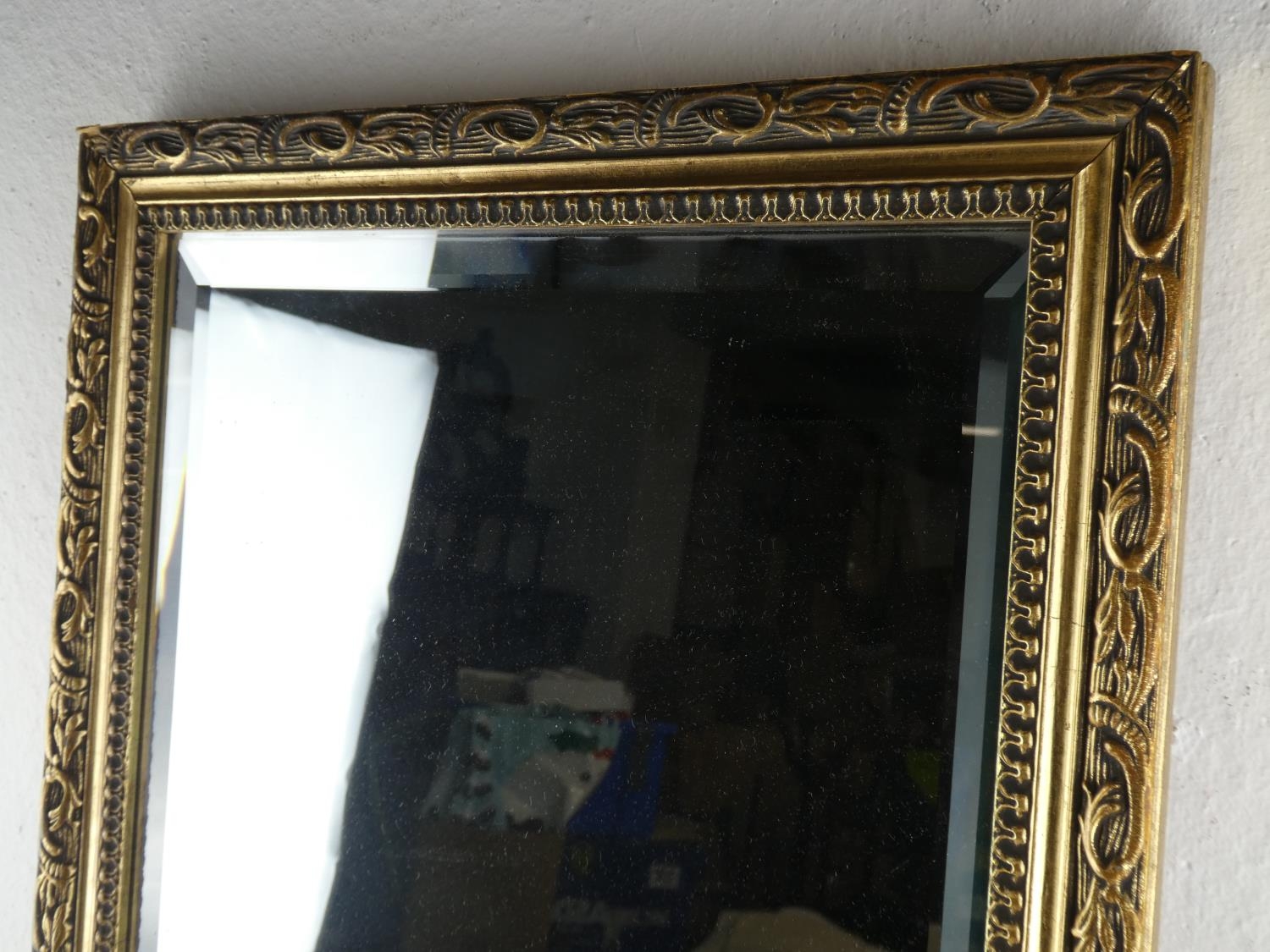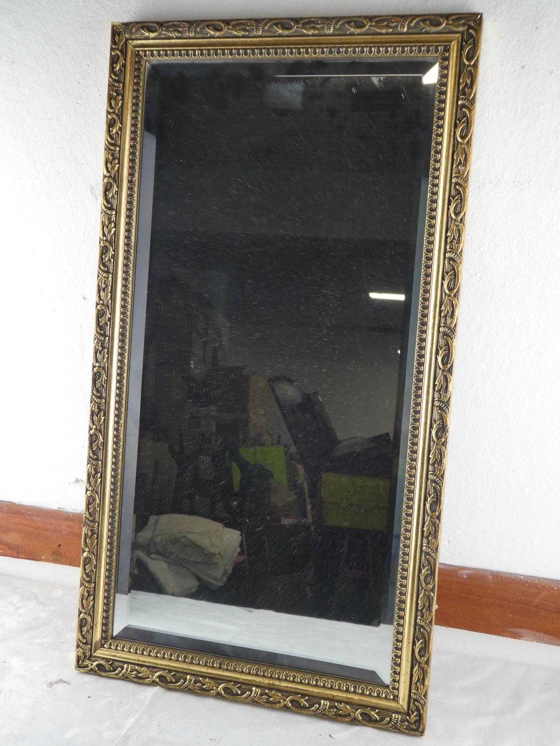 A gilt framed rectangular wall mirror. (measuring 66x35cm).