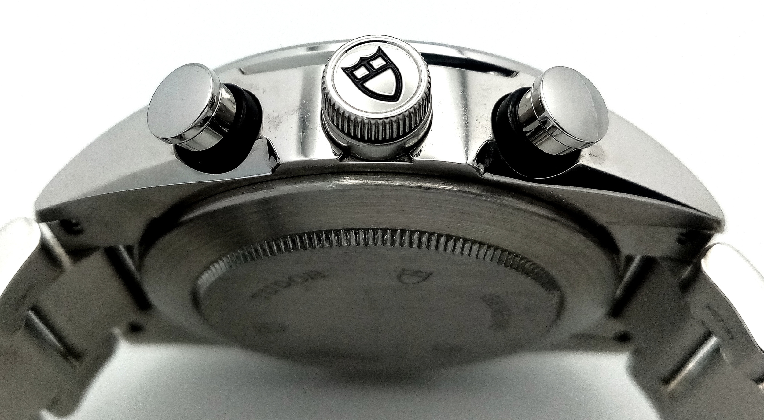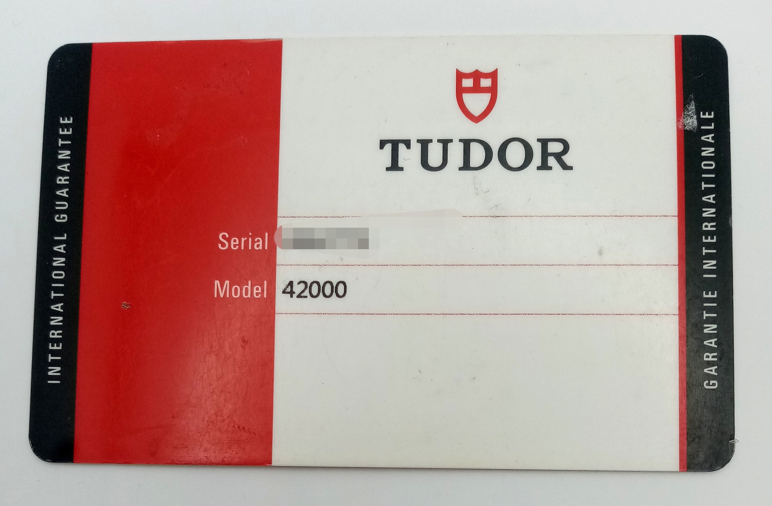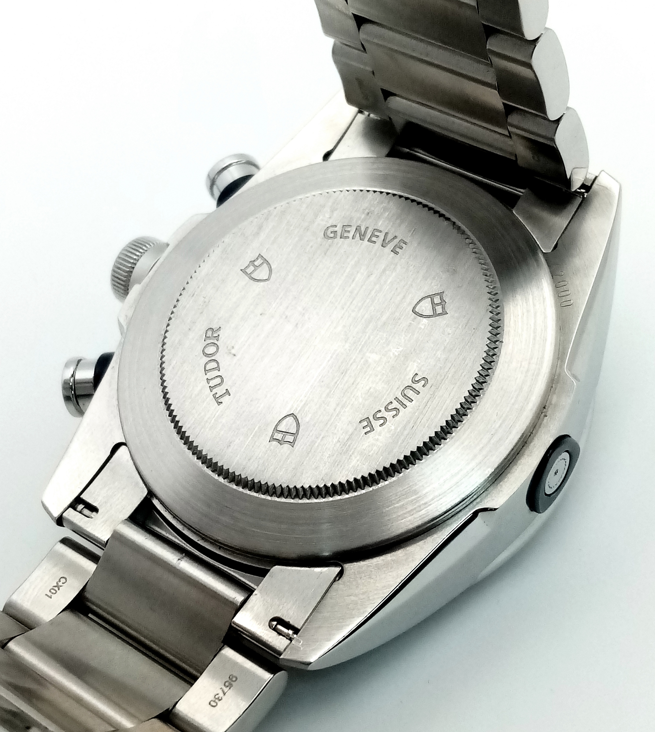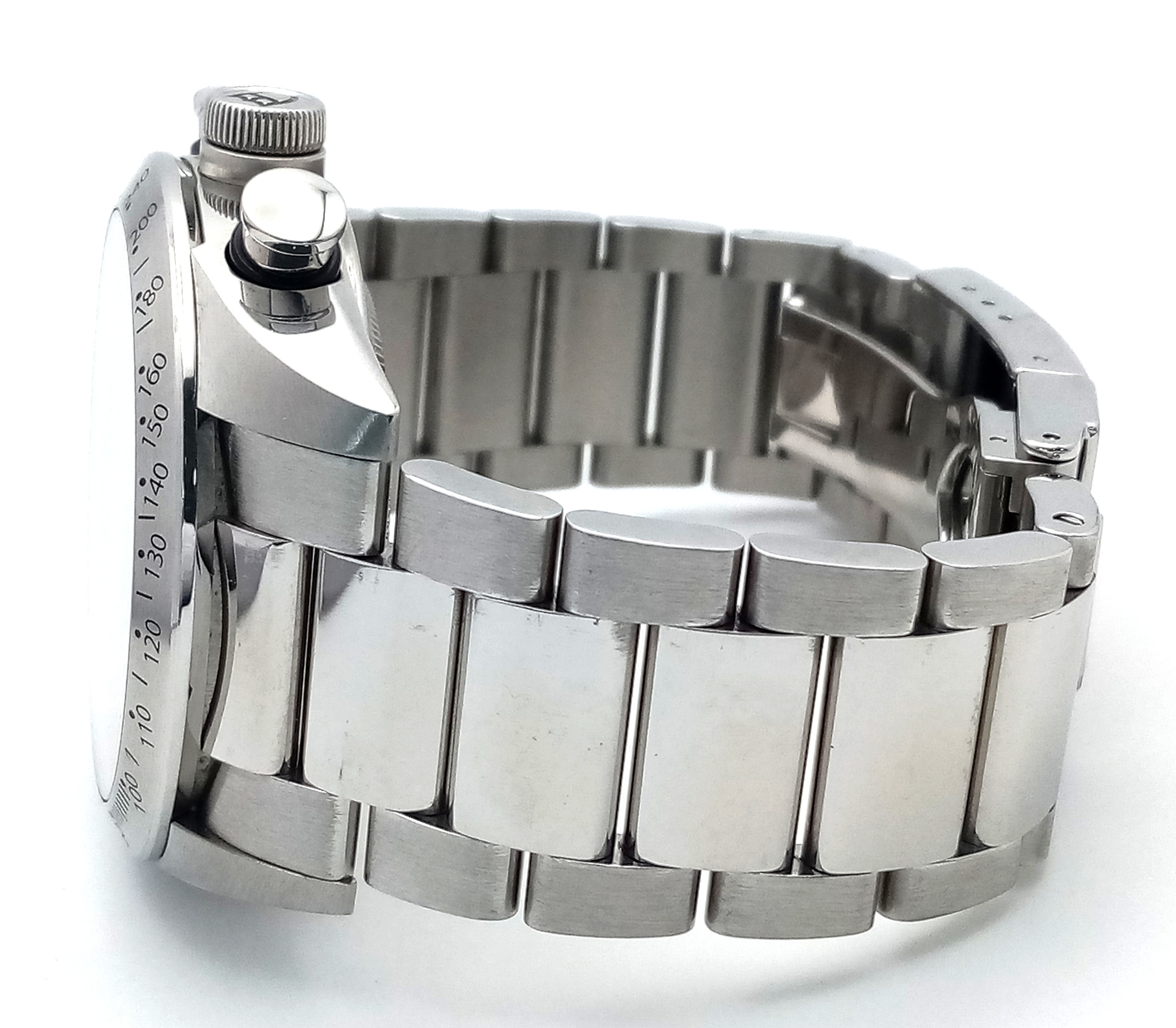 A Tudor Fastrider Chronograph Automatic Gents Watch. Model 42000. Stainless steel bracelet and case - 42mm. Black dial with three sub dials. Tachymeter bezel. In good condition and working order. Comes with a Tudor guarantee card.