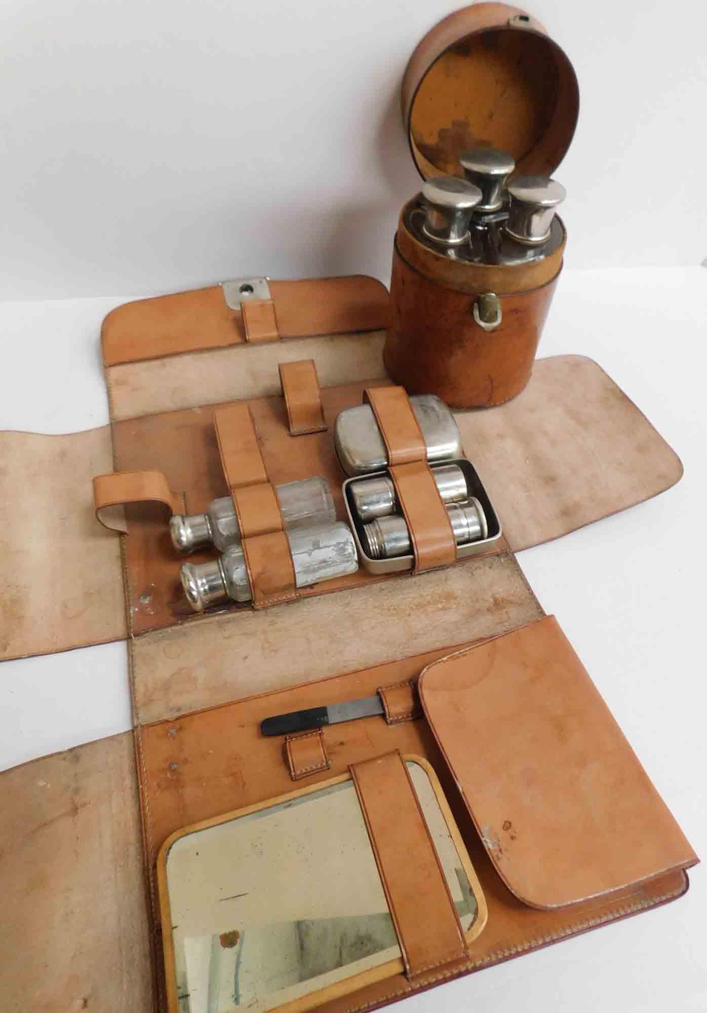 Vintage leather gents - cosmetic & bottle holders