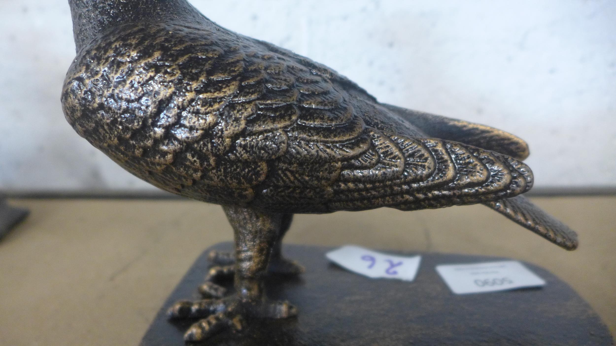 A cast metal pigeon ornament on base *This lot is subject to VAT
