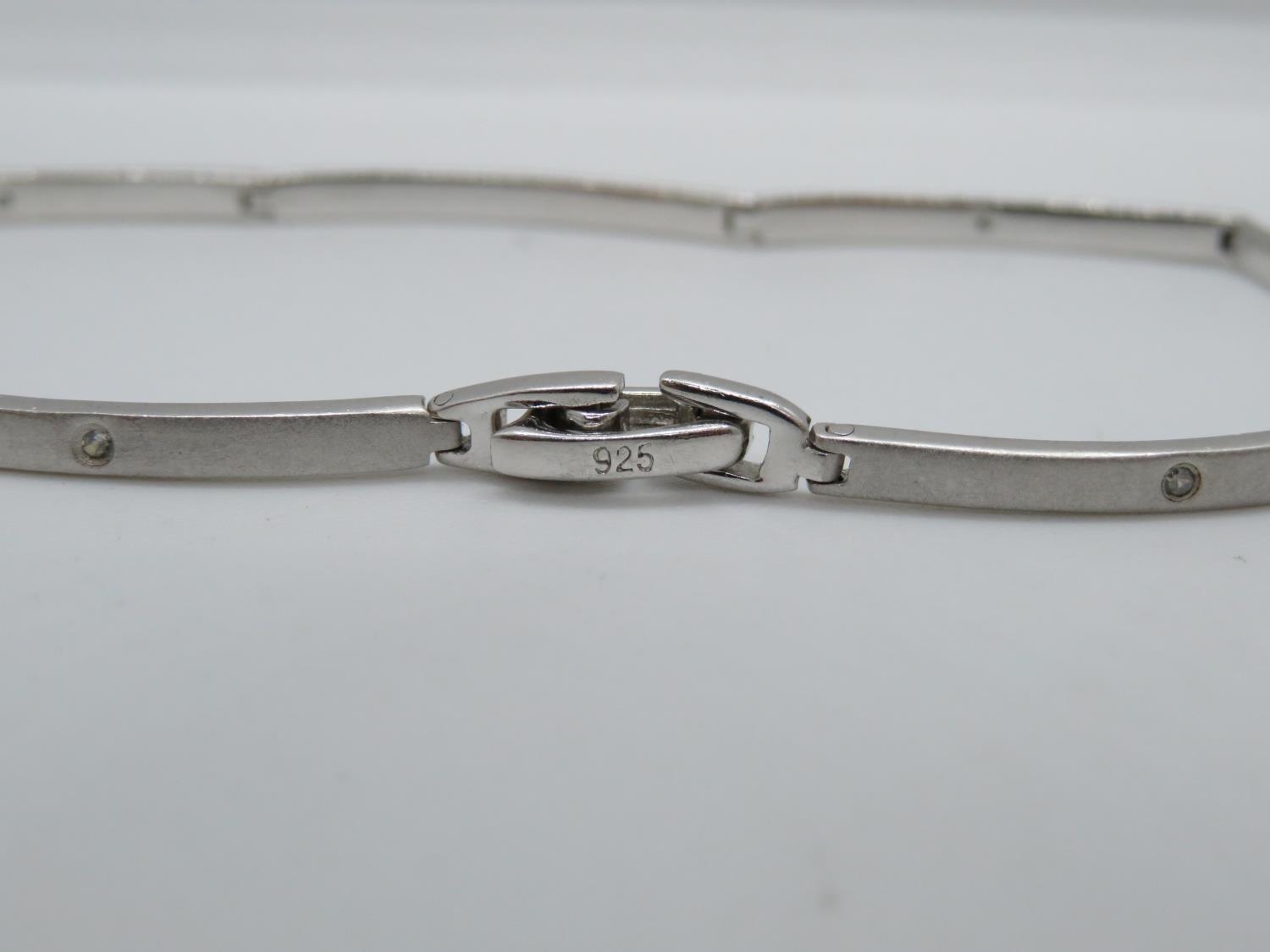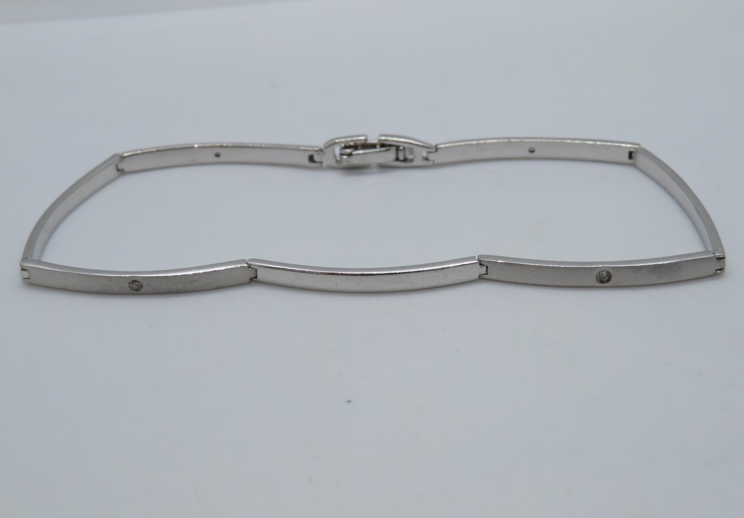 Modern silver bracelet set with 4x small diamonds 7.5"