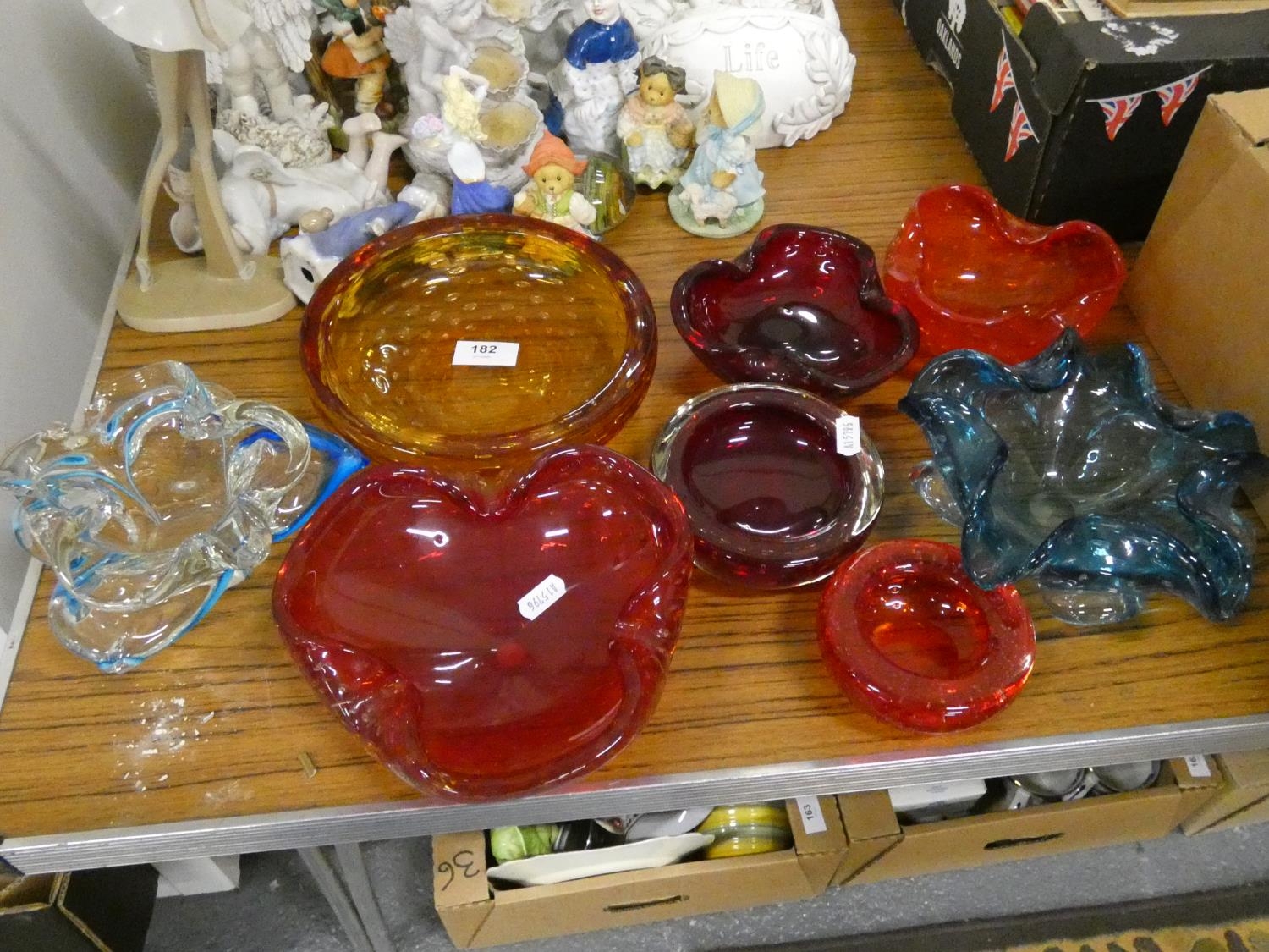 Eight art glass bowls and trinket dishes
