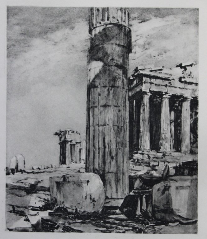 John Fulleylove 1897 - Etching of Column of the Propylaea. This superb etching is from Pictures of Classic Greek Landscapes and Architecture by John Fulleylove RI. Published by JM Dent & Co, London 1897.